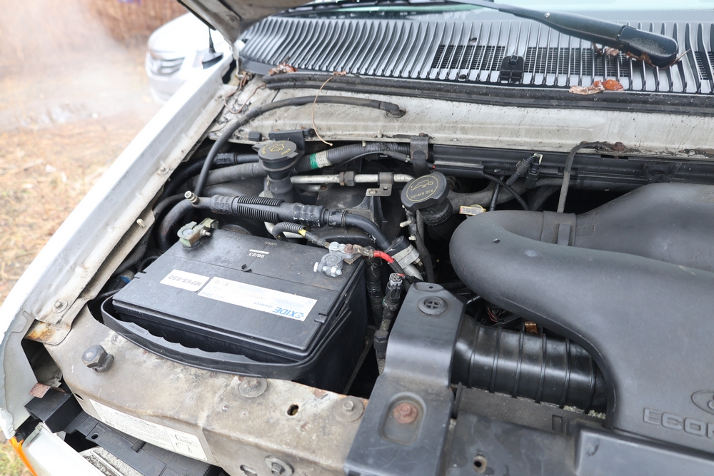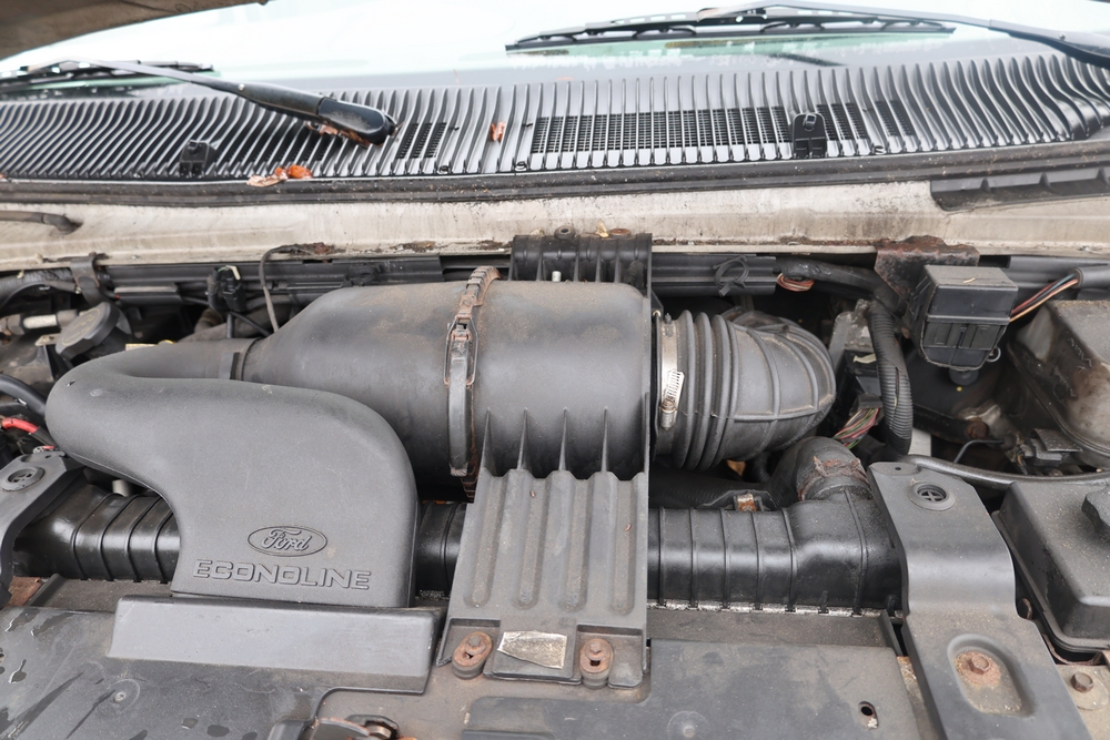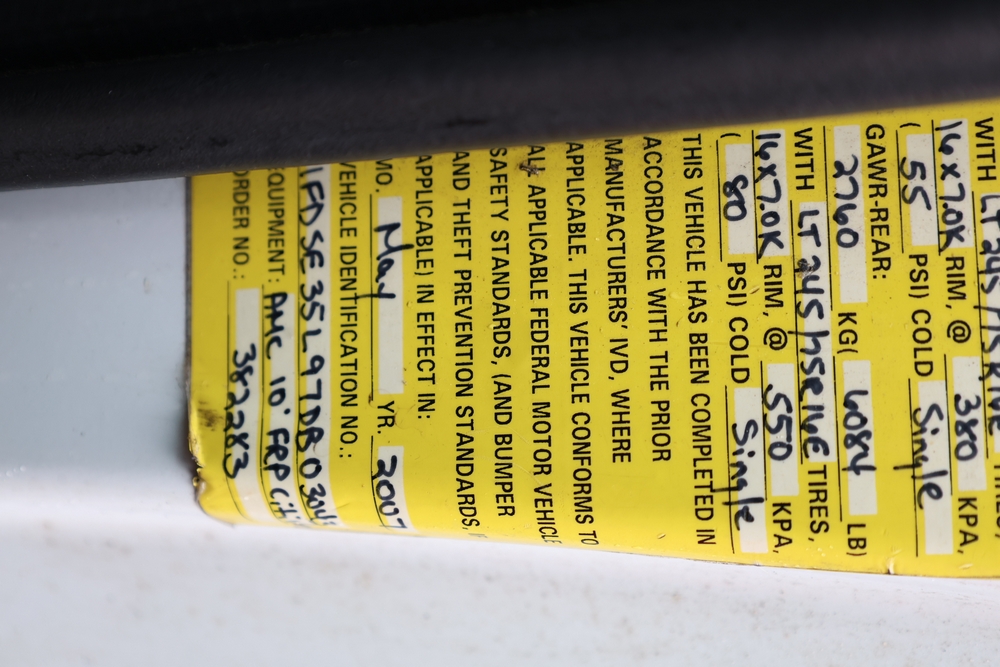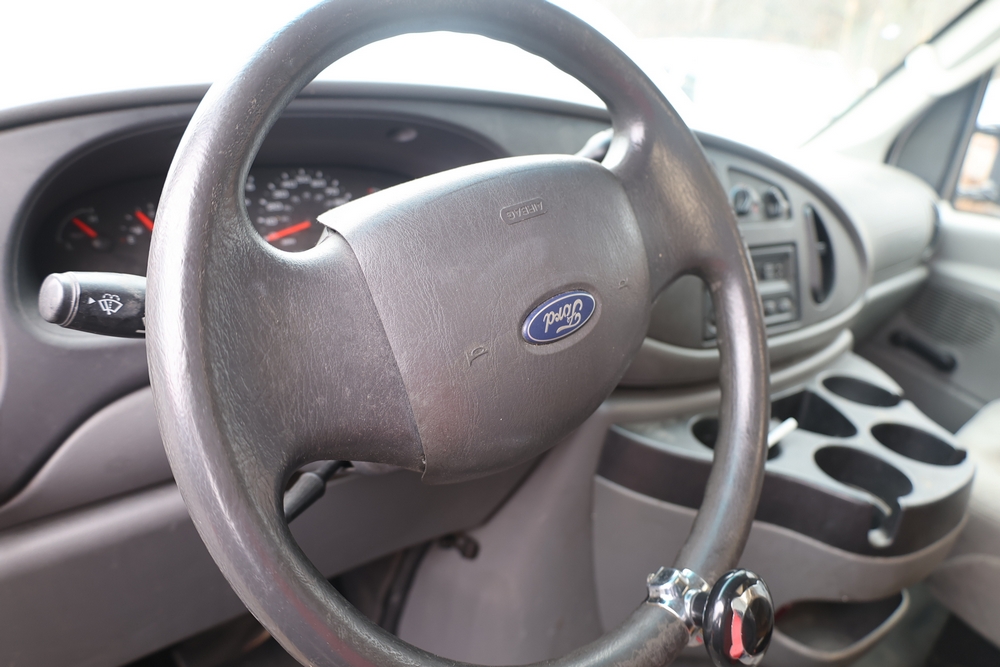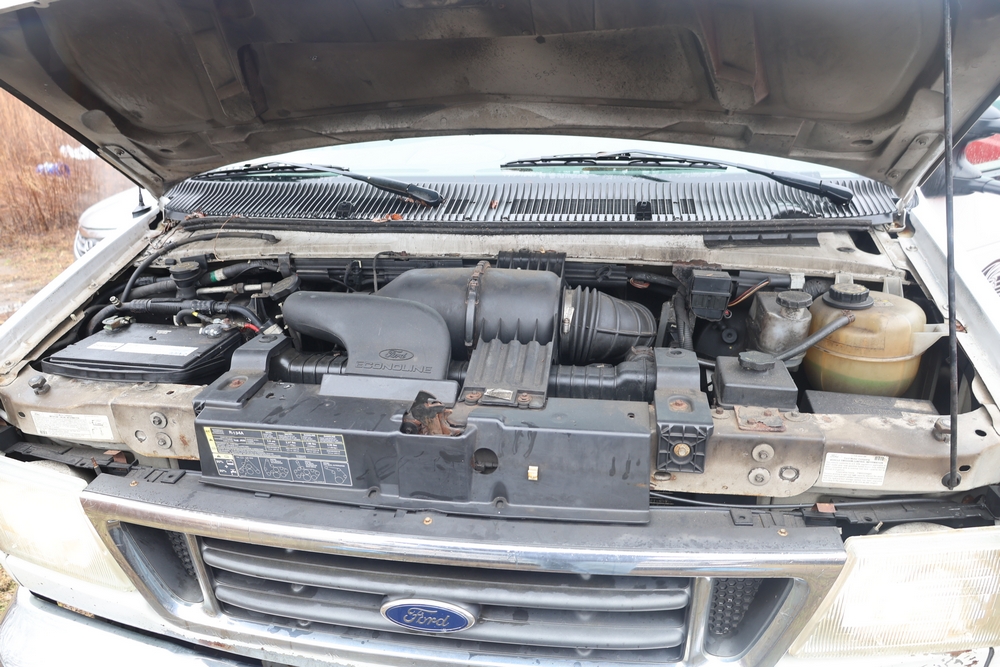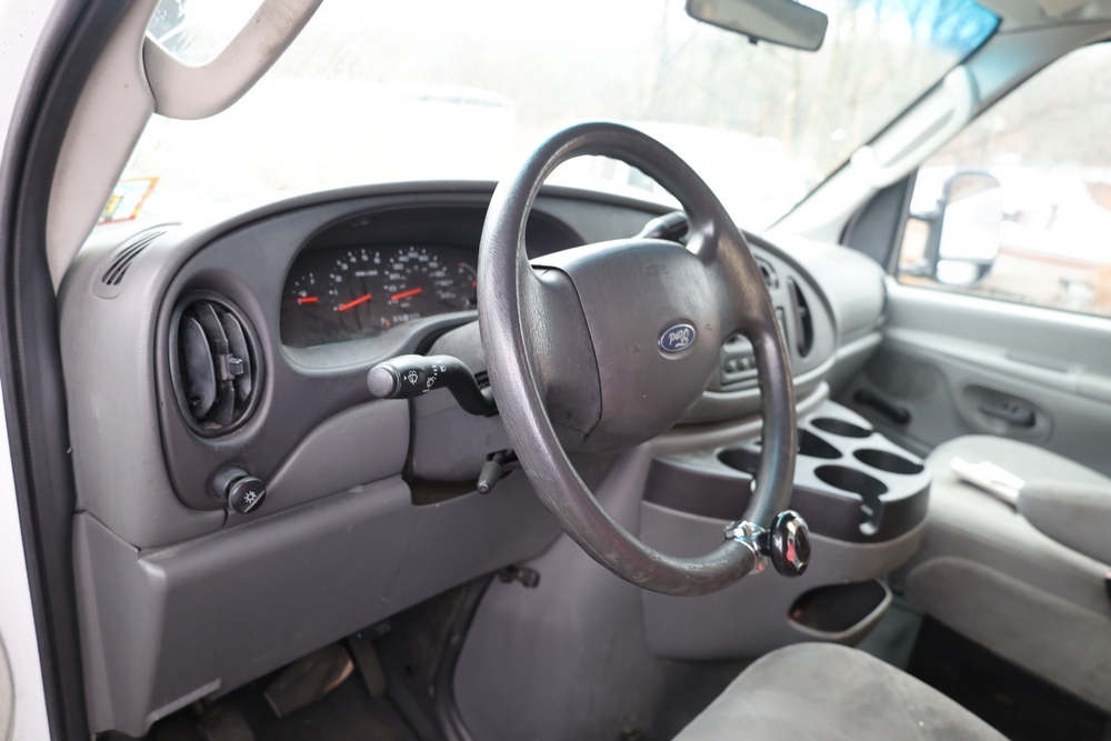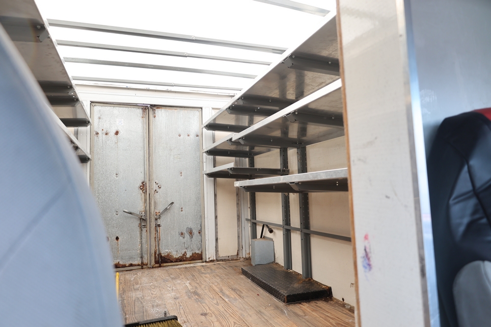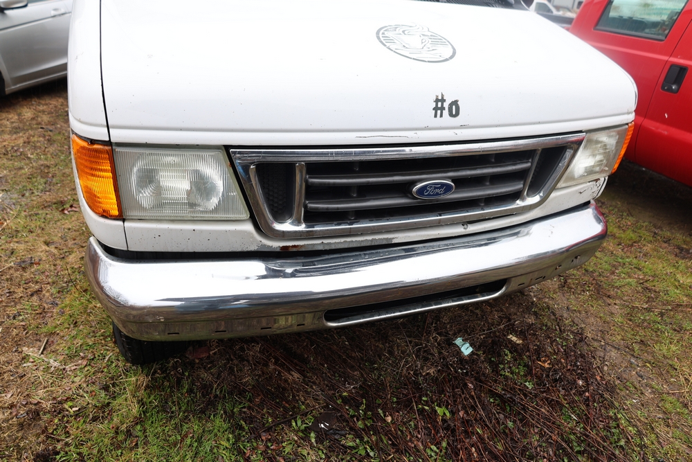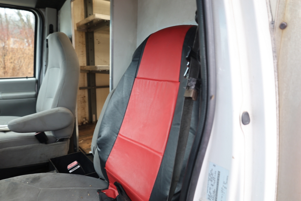 2007 Ford E-Series Van E-350 Super Duty with a 5.4L V8 SOHC 16V engine. VIN: 1FDSE35L97DB03043. Odometer reading: 170479. Body: cutaway. Box truck body with rear swing doors, interior shelving, cab partition, side mirrors, front grille, front bumper, steel wheels. NY Dealer transfer paperwork. Runs and drives. Key available.
