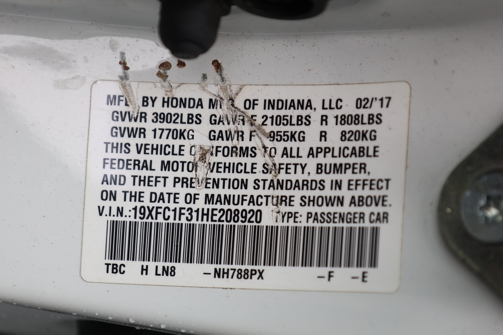 2017 Honda Civic EX-T Sedan CVT with a 1.5L L4 DOHC 16V turbo engine. VIN: 19XFC1F31HE208920. Odometer reading: 149114. Body: sedan 4-dr. Four door sedan, alloy wheels, touchscreen display, steering wheel mounted controls, automatic transmission, power windows, push button start, climate controls. NJ Dealer transfer paperwork, may not pass NYS inspection. Runs and drives. Key available.