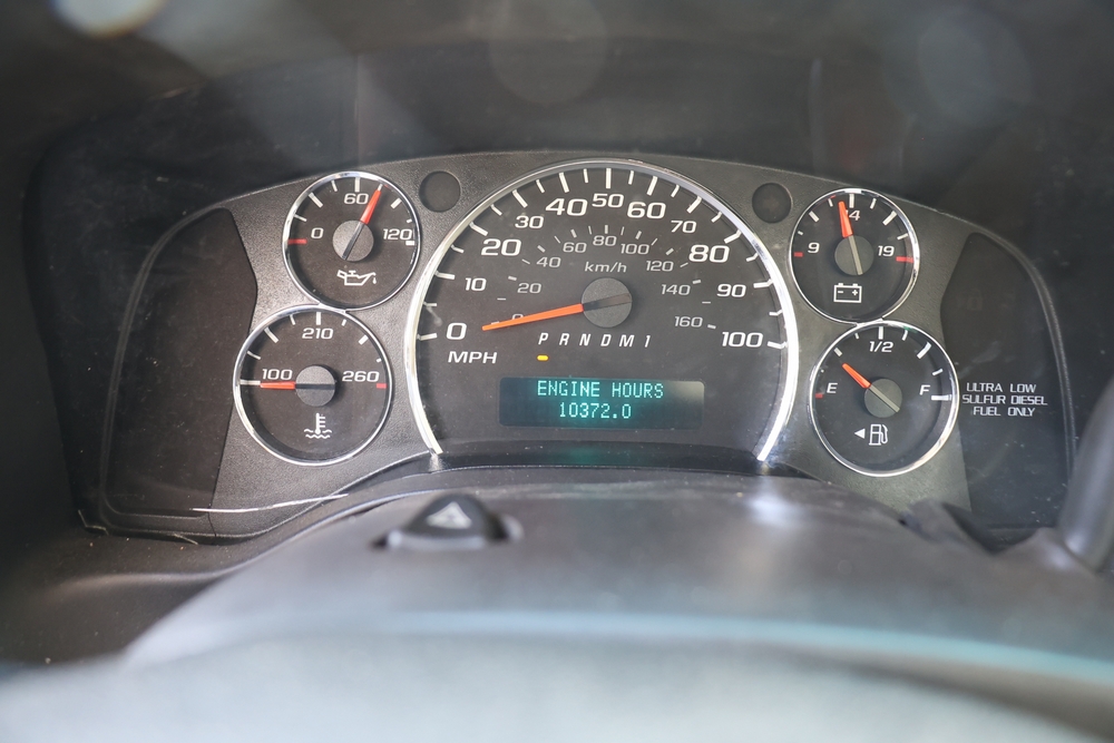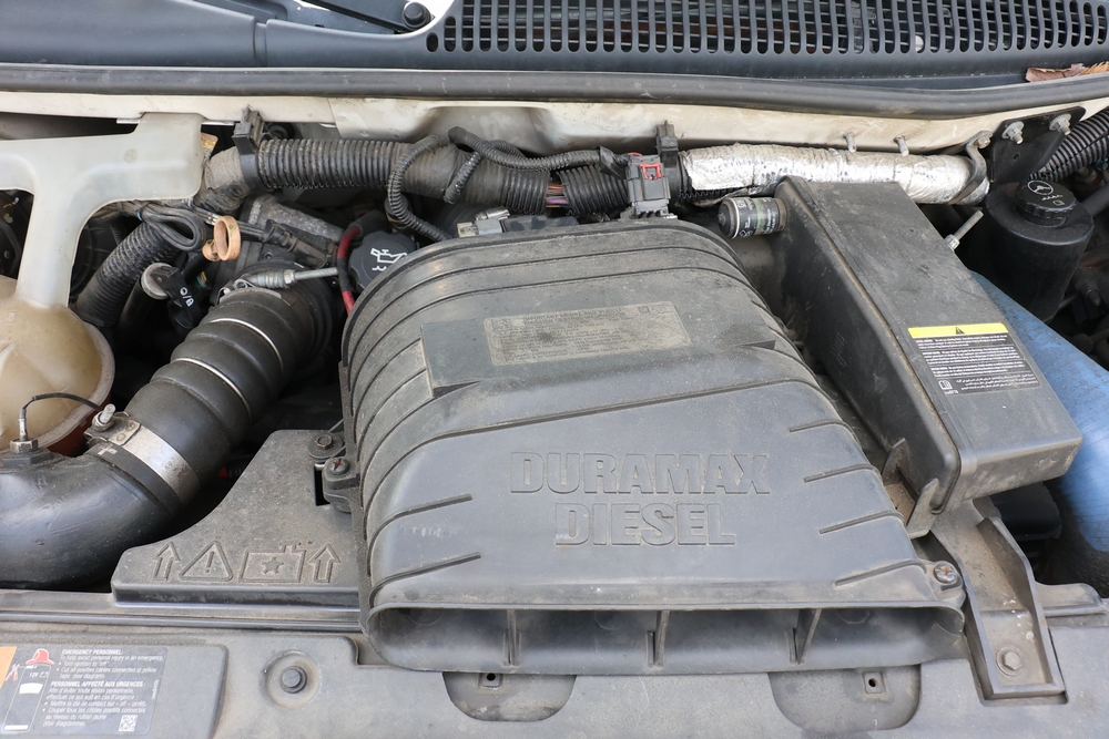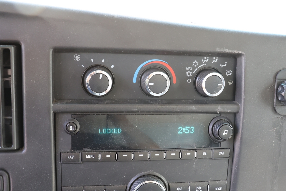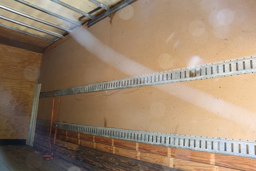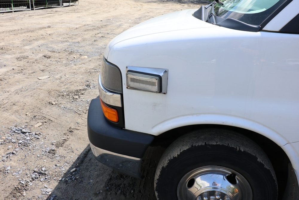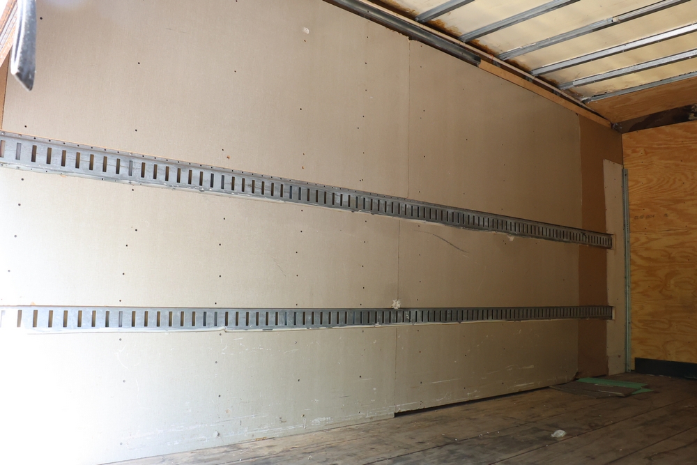 2016 Chevrolet Express G33803 box truck. VIN: 1GB6GUCL3G1250120. Odometer reading: 196,184 miles. Engine: 6.6L V8 OHV 16V Turbo diesel. Transmission: Automatic. Exterior: White cab and box body with dual rear wheels, rear roll-up door, and step bumper. Interior: Gray cloth seating with power outlets, manual climate controls, and factory AM/FM stereo system. Runs and drives. Keys, Title & Bill of Sale Available. Mileage will vary at the time of pickup.
