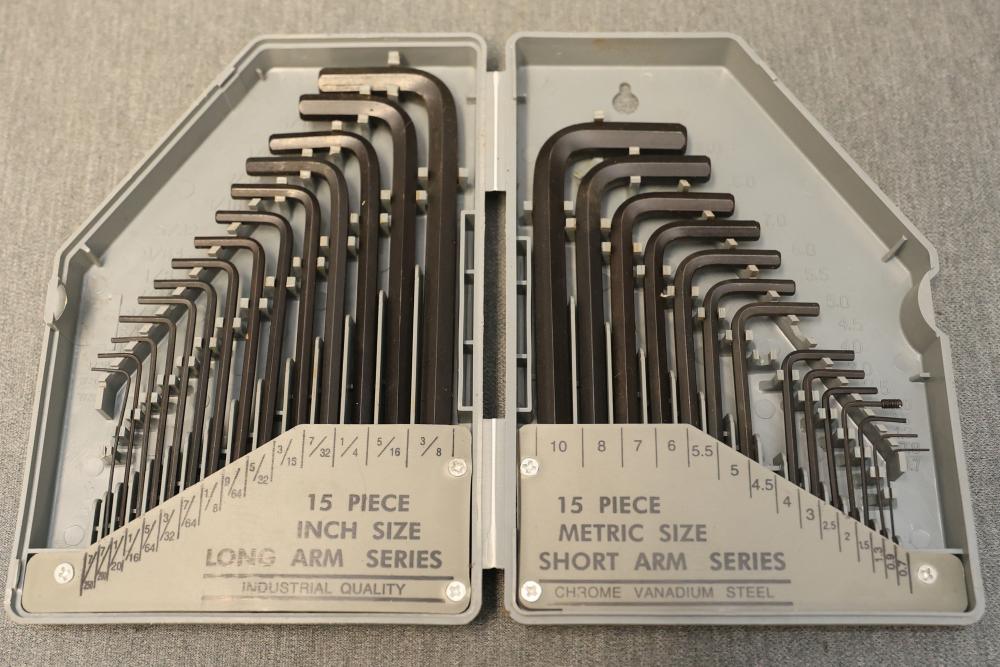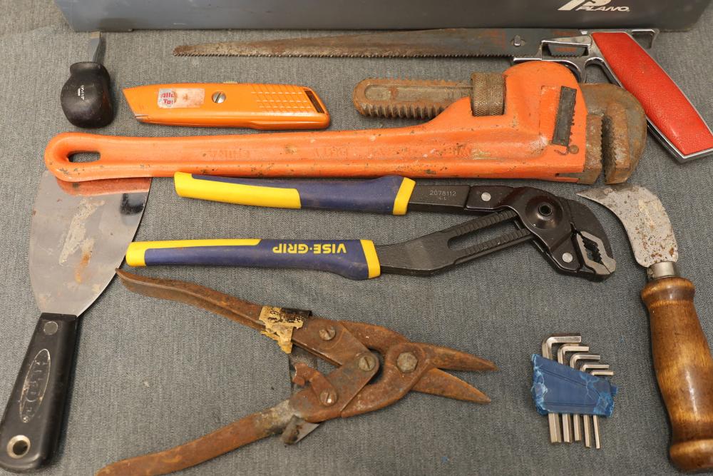 Hand Tools Lot including 6 toolboxes with tools, a PA70007 DataShark Network Tool Kit for cutting and stripping Ethernet cable, and a 30-piece Pro’s Kit combination hex key set (missing the 4.0 mm hex key). Includes various tools for maintenance and repair tasks. Pickup only.
