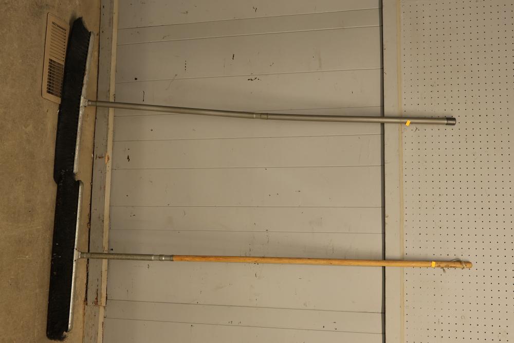 Maintenance Tools Set Including 6 Long-Handled Push Brooms. The tools feature six durable brooms with long handles suitable for sweeping large areas. These brooms are designed for easy and efficient removal of dust, dirt, and garbage off of surfaces. Pickup only.