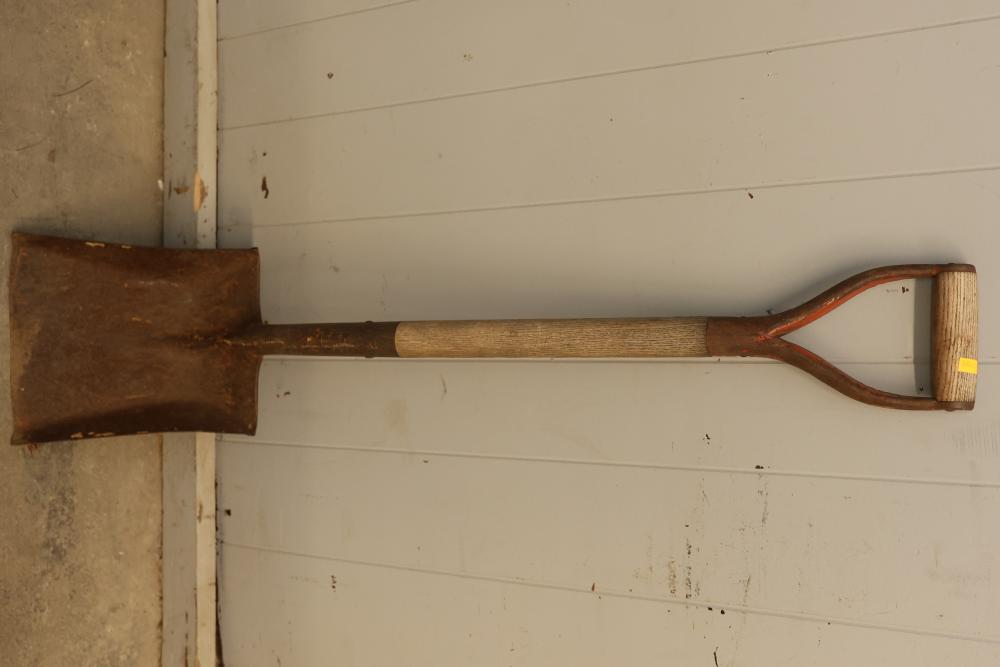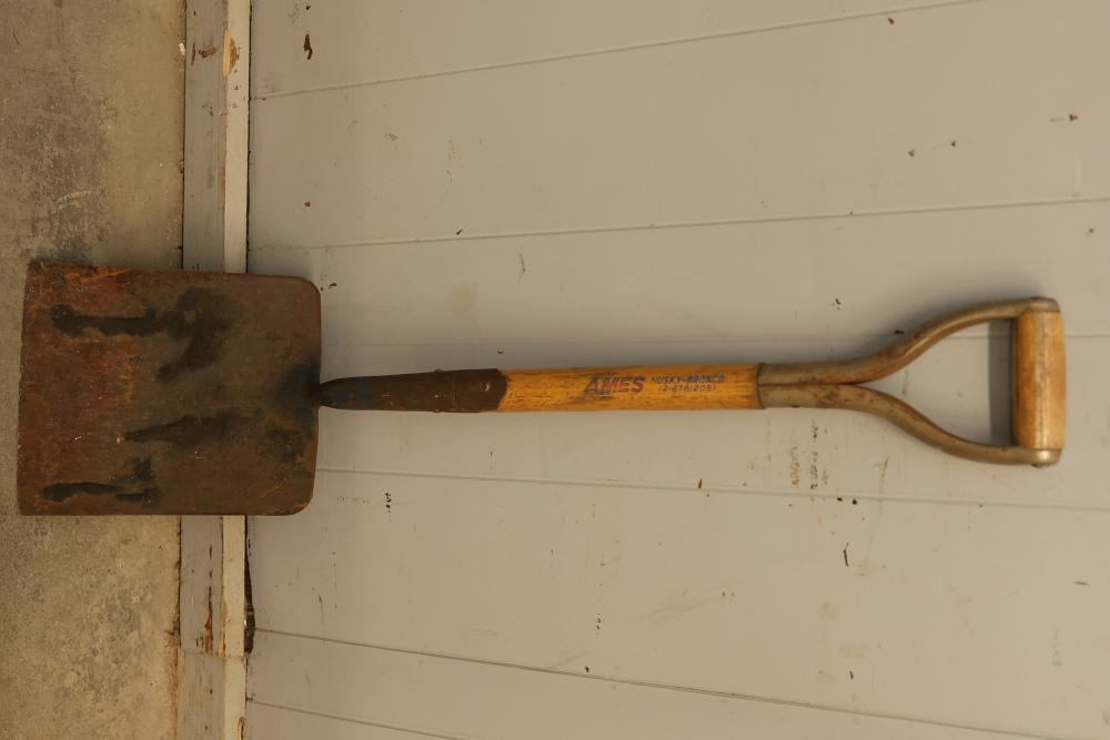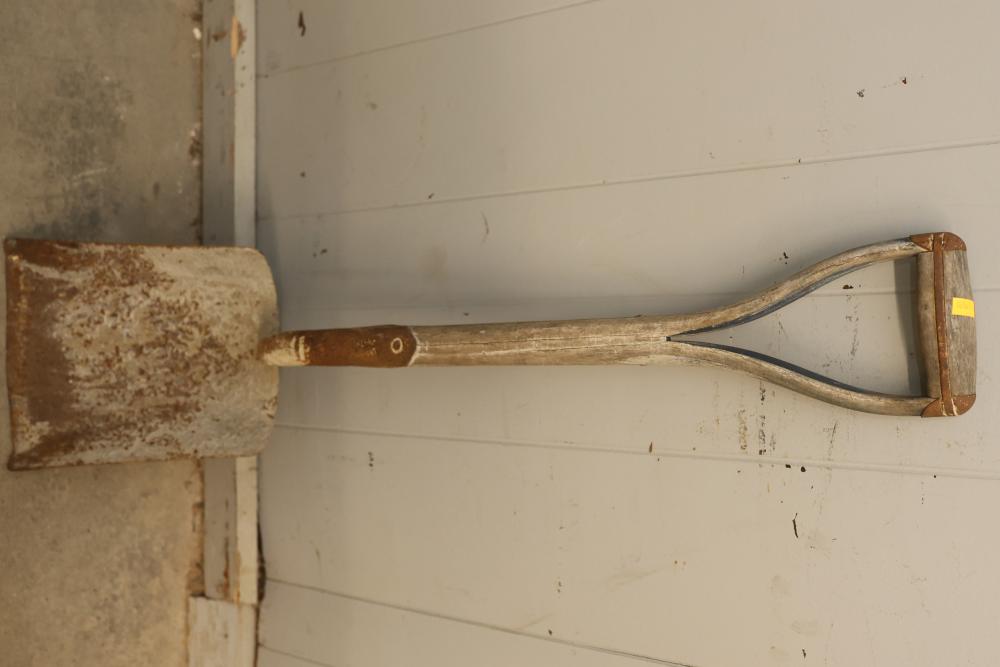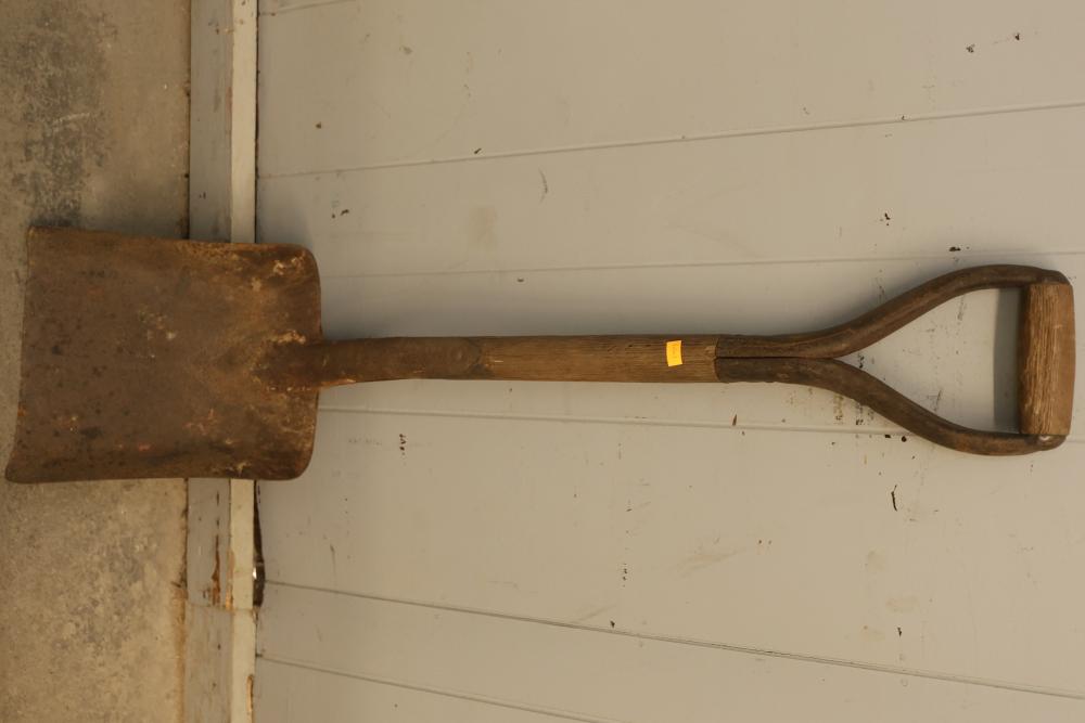 Hand Tools Set Including 4 Short-Handled Shovels. This set comprises four shovels with short handles, each showcasing a sturdy metal blade and a wooden handle with a D-grip design. Condition varies with wear consistent with age and use. Ideal for manual labor purposes or tool collections. Pickup only.