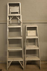 6-Foot Unmarked Steel Ladder and Keller 504 4-Foot Steel Ladder. The Keller ladder features a 200 lbs duty rating (Type III). Both ladders are made of steel and are sturdy for a variety of uses. Light wear is visible, consistent with prior use. Pickup only.
