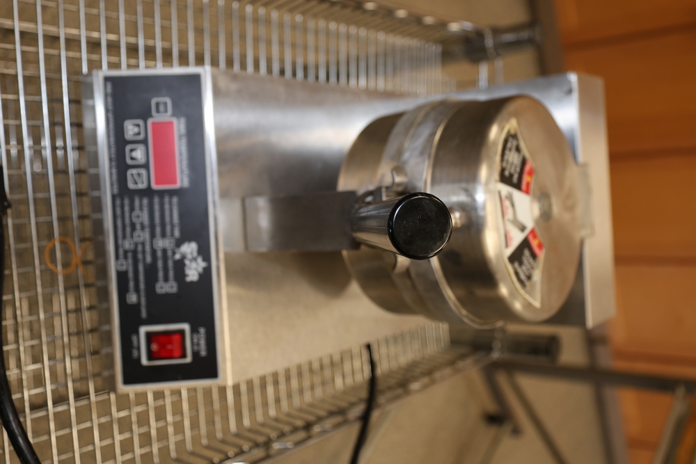 Items include Kyocera standup copy machine; Bunn coffee machines; Mastercraft commercial floor cleaner/buffer; vintage Globe commercial slicing machine; vintage Kodak projector; vintage poker tables; rubber kitchen interlocking floor mat; assorted steak knives; coffee cups/saucers; dinner plates; Minolta scanner; GE microwave; vintage fire extinguisher; vintage Indian pack; metal roll-up shutter & more. Items are located in Hopewell Junction, NY.