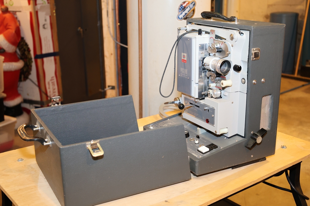 Vintage Kodak Projector,Excellent condition, missing 1 wheel for tape; Includes AV cart, Outlets still function, 4 wheels, 2 with locking mechanism, 3 outlets; Pull down 8' projector screen.