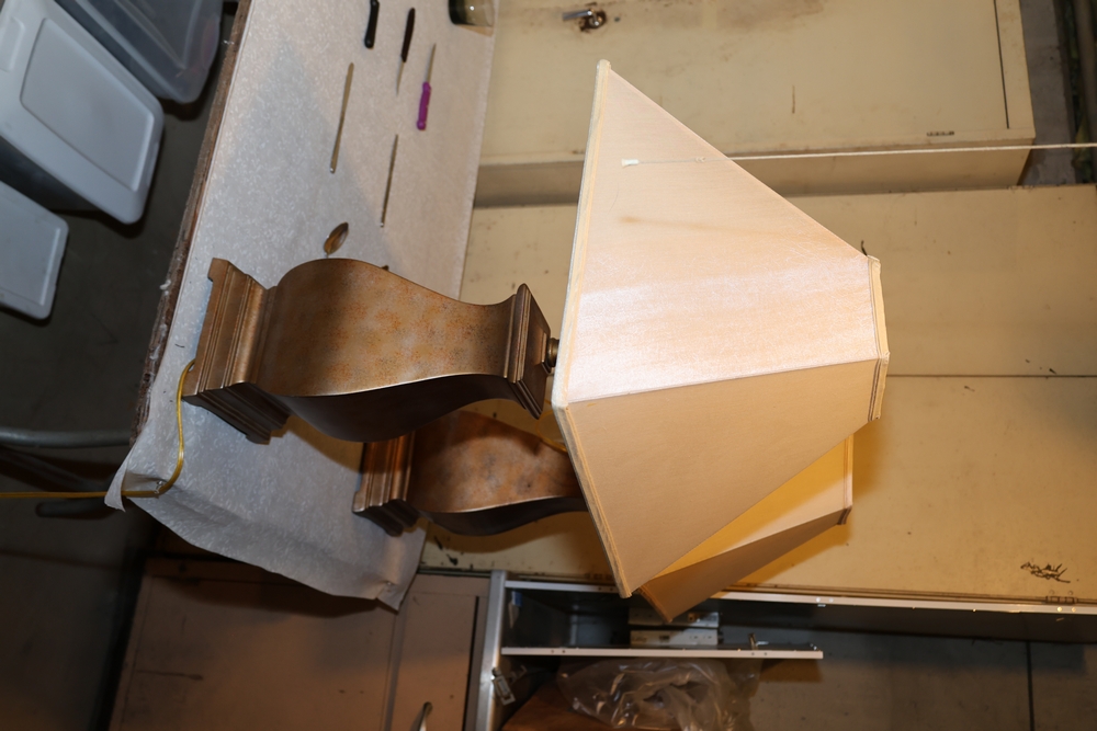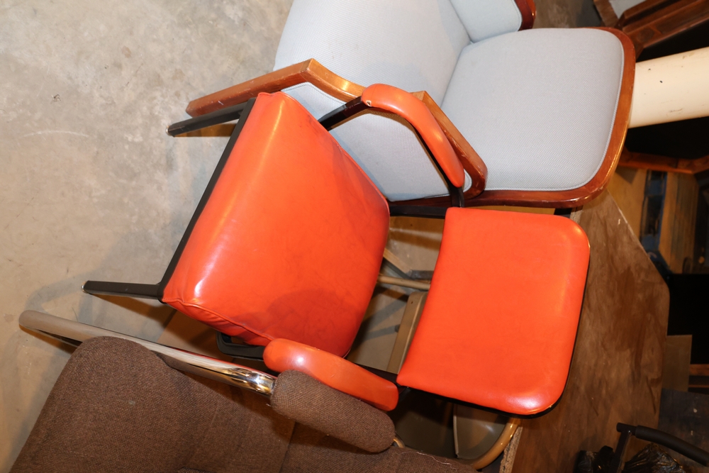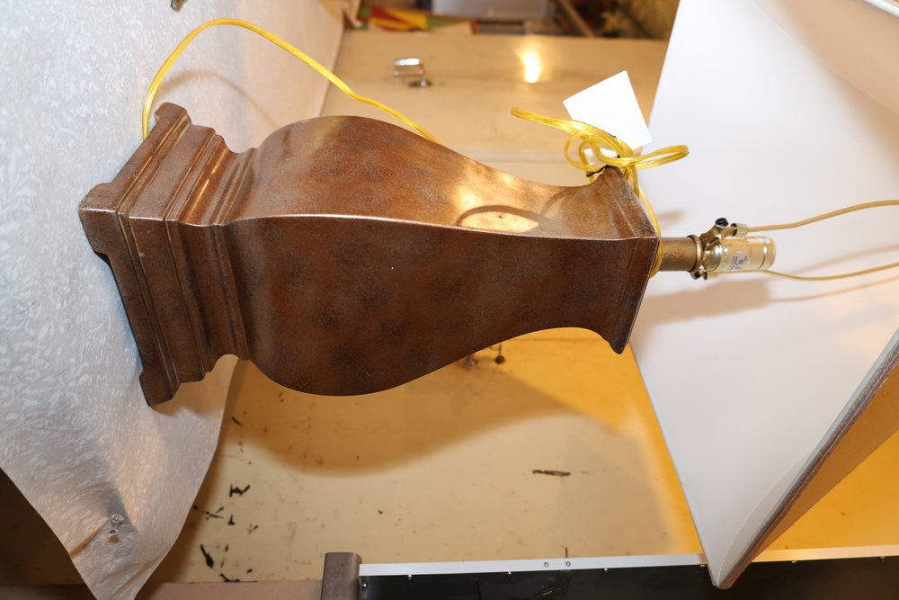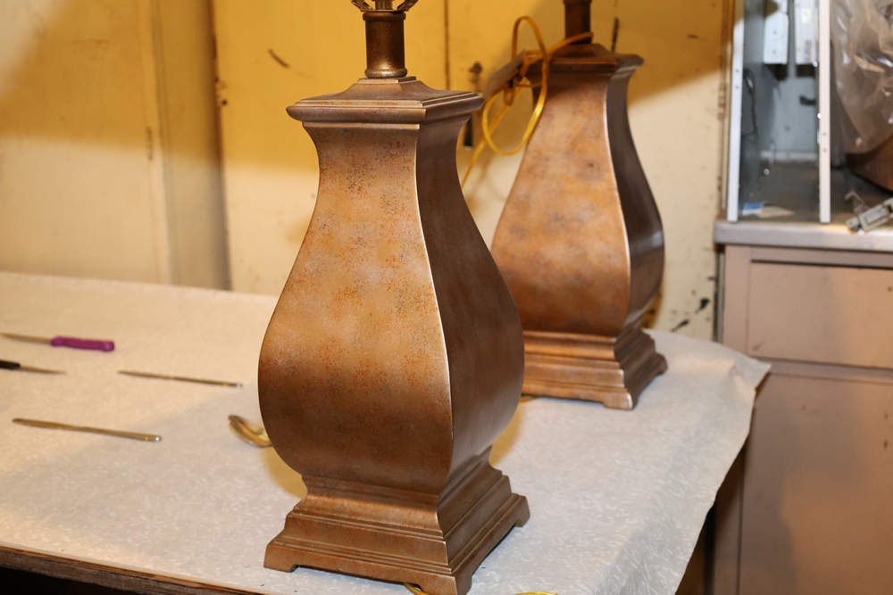 Assorted Chairs (3),Random old chairs, sturdy chairs in decent condition; Table Lamps (2), Bronze colored lamps with beige lampshades.