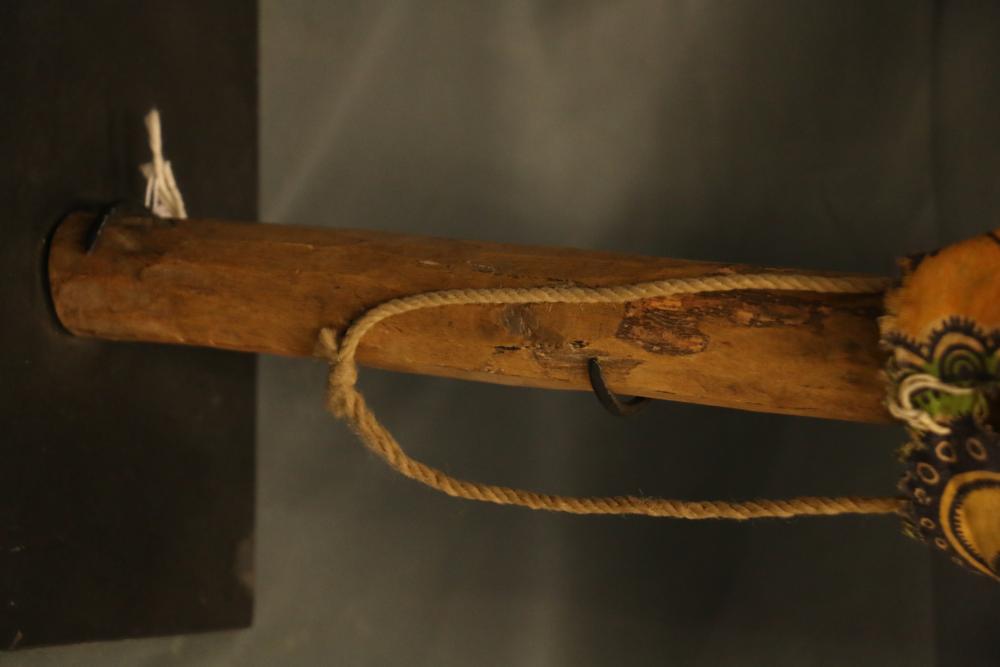 Over 170 lots of African art. Items include women's indigo wraps. Marka/Dafing people, Burkina Faso; Dan headdress, Liberia; large carved Mali-style African drum; old currency spears. Tuareg people, Mali & Niger; rod puppet head of Dankalankule, the Oryx antelope; Bandaka “jellyfish” form currency. Mambila & Chamba people; pendants, Coptic Christian people, Ethiopia; leg band. Mongo & Konda people, Congo; Koranko body mask, Guinea, Sierra Leone; abstract bogolan textile. Bamana people, Mali; ceremonial snake-form bayonet/knife. Lobi people, Burkina Faso; ceremonial blacksmith’s hammer, Northern Nigeria; wedding blanket. Tuareg people, Niger & Mali; West African heddle pulleys. (A) Senufo people, Ivory Coast; maternity figure. Lokko people, Sierra Leone; male Chi Wara head crest mask. Bamana people, Mali; rare Asafo flag bearer/dancer's skirt. Fante people, Ghana & more. Items are located in Pleasant Valley, NY.