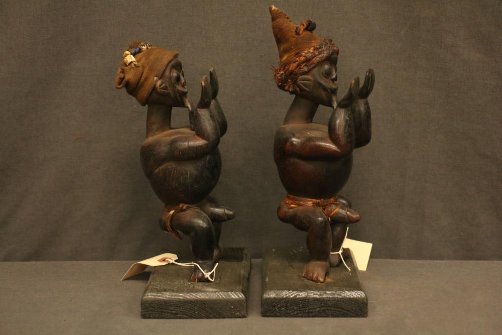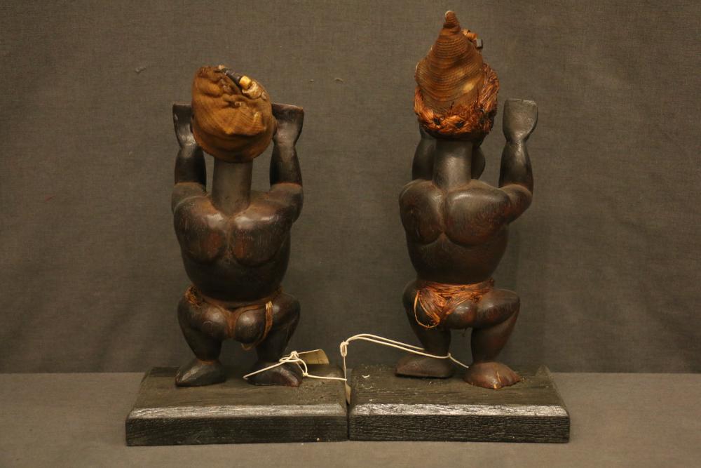 Over 170 lots of African art. Items include women's indigo wraps. Marka/Dafing people, Burkina Faso; Dan headdress, Liberia; large carved Mali-style African drum; old currency spears. Tuareg people, Mali & Niger; rod puppet head of Dankalankule, the Oryx antelope; Bandaka “jellyfish” form currency. Mambila & Chamba people; pendants, Coptic Christian people, Ethiopia; leg band. Mongo & Konda people, Congo; Koranko body mask, Guinea, Sierra Leone; abstract bogolan textile. Bamana people, Mali; ceremonial snake-form bayonet/knife. Lobi people, Burkina Faso; ceremonial blacksmith’s hammer, Northern Nigeria; wedding blanket. Tuareg people, Niger & Mali; West African heddle pulleys. (A) Senufo people, Ivory Coast; maternity figure. Lokko people, Sierra Leone; male Chi Wara head crest mask. Bamana people, Mali; rare Asafo flag bearer/dancer's skirt. Fante people, Ghana & more. Items are located in Pleasant Valley, NY.