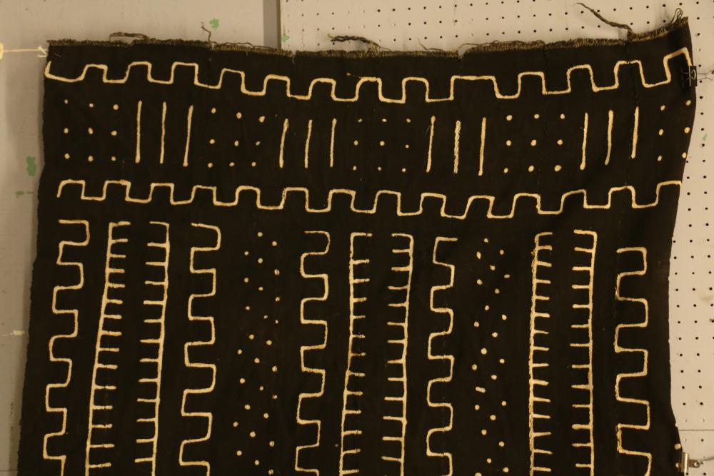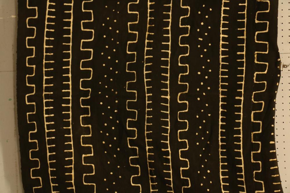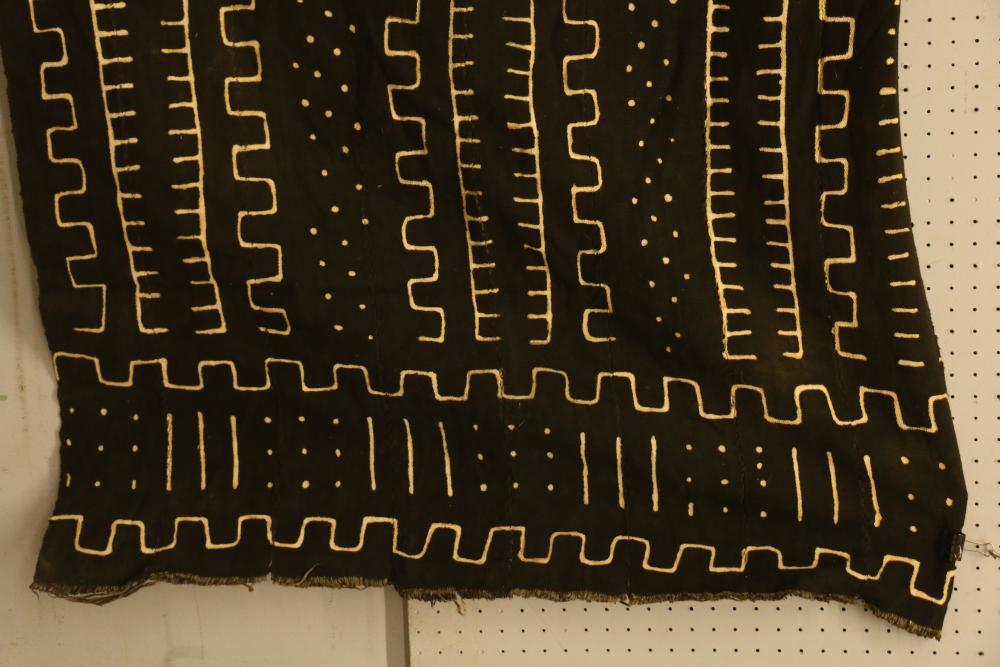 TRADITIONAL BOGOLAN TEXTILE (“MUD CLOTH”). Bamana people, Mali. Made from 8 hand woven, hand sewn cotton strips. Painted with traditional designs using pigment derived from soil. Cotton textile, pigment. 63in x 43in.