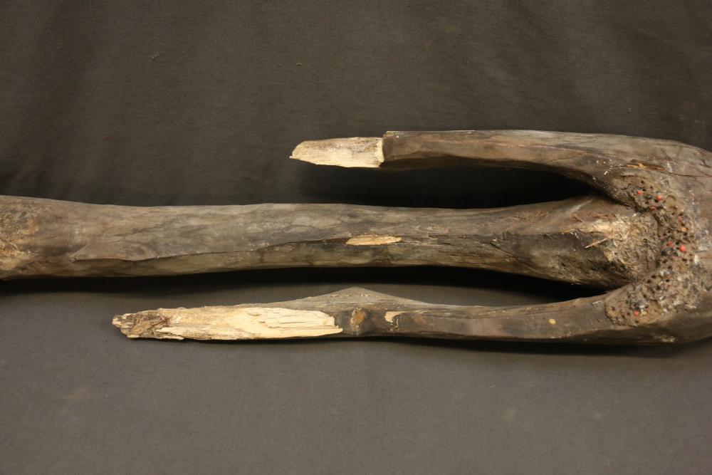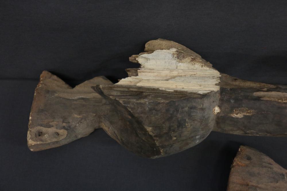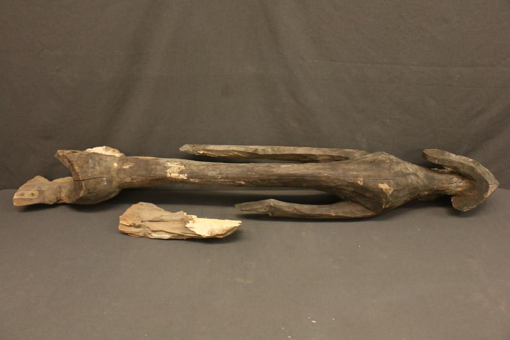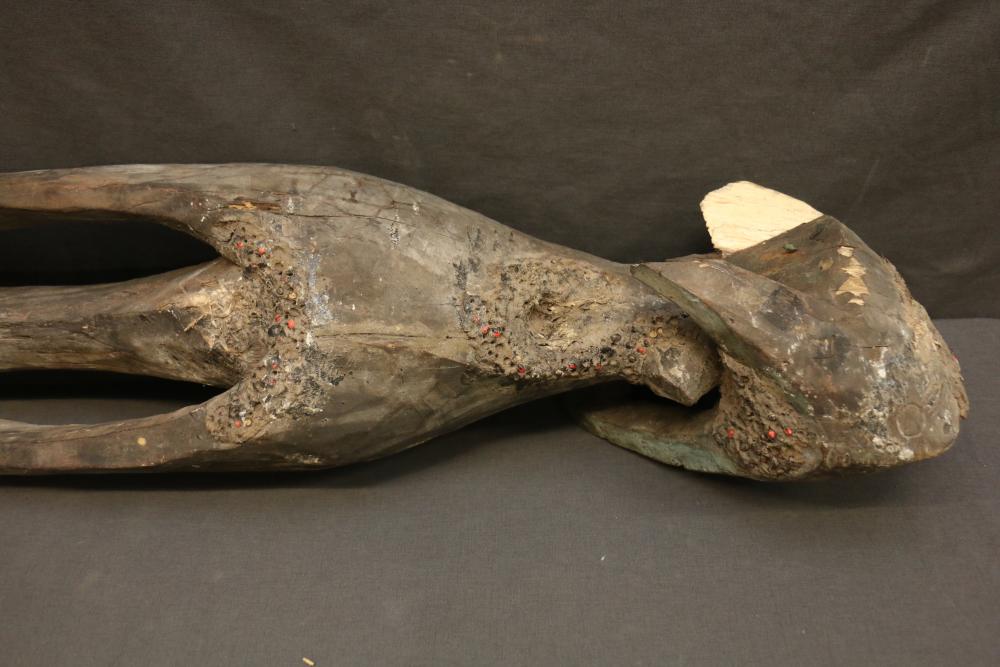 Over 170 lots of African art. Items include women's indigo wraps. Marka/Dafing people, Burkina Faso; Dan headdress, Liberia; large carved Mali-style African drum; old currency spears. Tuareg people, Mali & Niger; rod puppet head of Dankalankule, the Oryx antelope; Bandaka “jellyfish” form currency. Mambila & Chamba people; pendants, Coptic Christian people, Ethiopia; leg band. Mongo & Konda people, Congo; Koranko body mask, Guinea, Sierra Leone; abstract bogolan textile. Bamana people, Mali; ceremonial snake-form bayonet/knife. Lobi people, Burkina Faso; ceremonial blacksmith’s hammer, Northern Nigeria; wedding blanket. Tuareg people, Niger & Mali; West African heddle pulleys. (A) Senufo people, Ivory Coast; maternity figure. Lokko people, Sierra Leone; male Chi Wara head crest mask. Bamana people, Mali; rare Asafo flag bearer/dancer's skirt. Fante people, Ghana & more. Items are located in Pleasant Valley, NY.