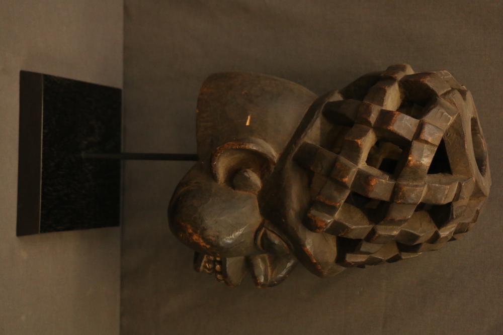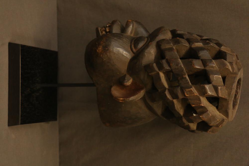 Male Mask, on custom base, Western Grassfields, Cameroon. 22" tall. Provenance - Exhibition: “More Than A Pretty Face: Masks from West and Central Africa From the Rosen African Art Collection.” Free Library Gallery, Philadelphia, PA 2011. Page number 160 figure 225 in the book: Masks From West and Central Africa A Celebration of Color and Form. Mary Sue and Paul Peter Rosen. Atglen, PA, Schiffer Publishing.