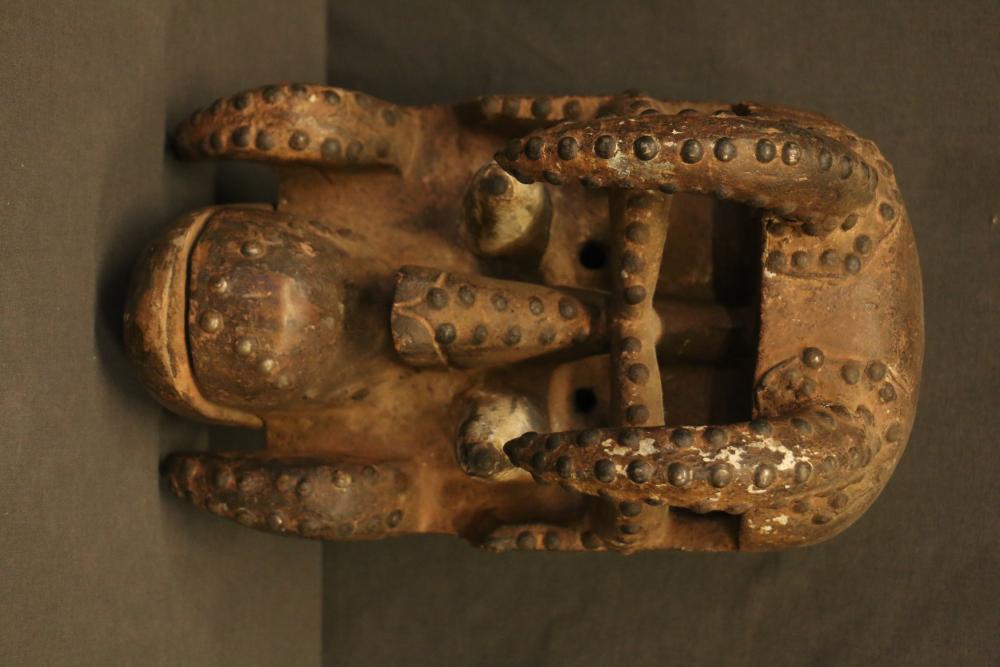 Over 170 lots of African art. Items include women's indigo wraps. Marka/Dafing people, Burkina Faso; Dan headdress, Liberia; large carved Mali-style African drum; old currency spears. Tuareg people, Mali & Niger; rod puppet head of Dankalankule, the Oryx antelope; Bandaka “jellyfish” form currency. Mambila & Chamba people; pendants, Coptic Christian people, Ethiopia; leg band. Mongo & Konda people, Congo; Koranko body mask, Guinea, Sierra Leone; abstract bogolan textile. Bamana people, Mali; ceremonial snake-form bayonet/knife. Lobi people, Burkina Faso; ceremonial blacksmith’s hammer, Northern Nigeria; wedding blanket. Tuareg people, Niger & Mali; West African heddle pulleys. (A) Senufo people, Ivory Coast; maternity figure. Lokko people, Sierra Leone; male Chi Wara head crest mask. Bamana people, Mali; rare Asafo flag bearer/dancer's skirt. Fante people, Ghana & more. Items are located in Pleasant Valley, NY.