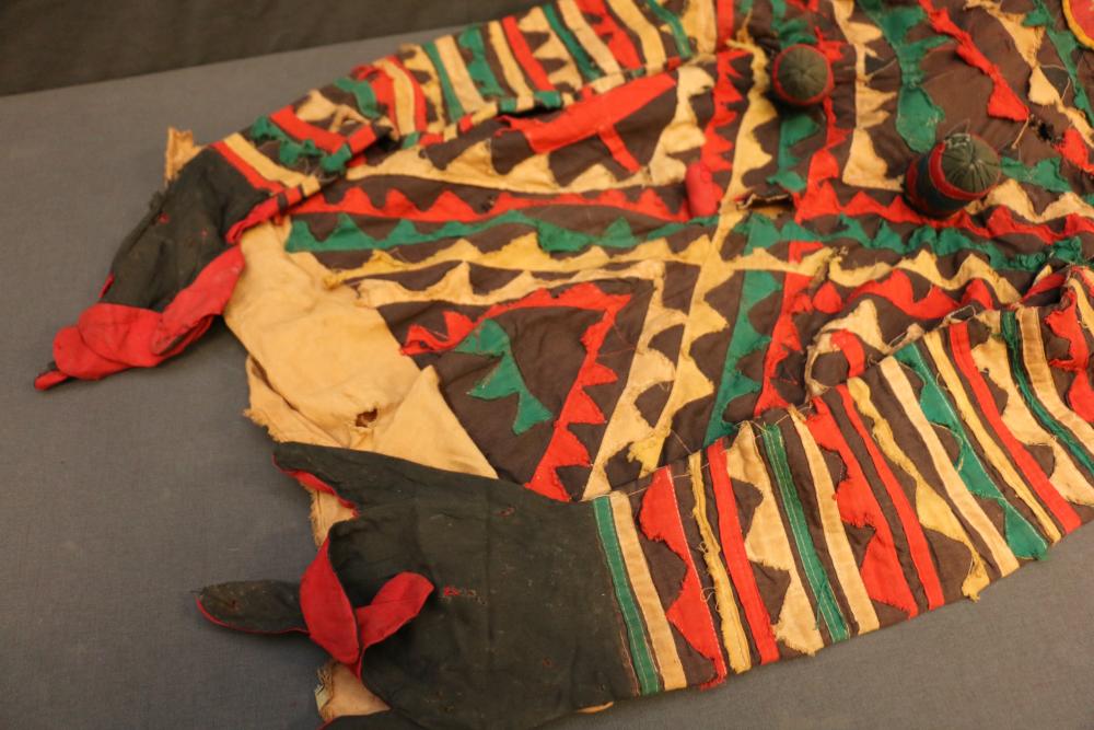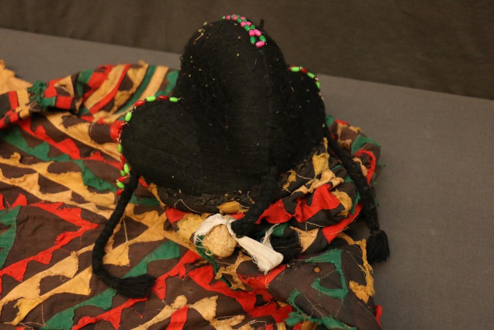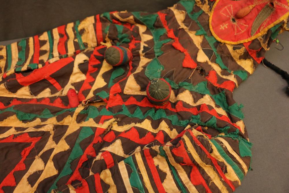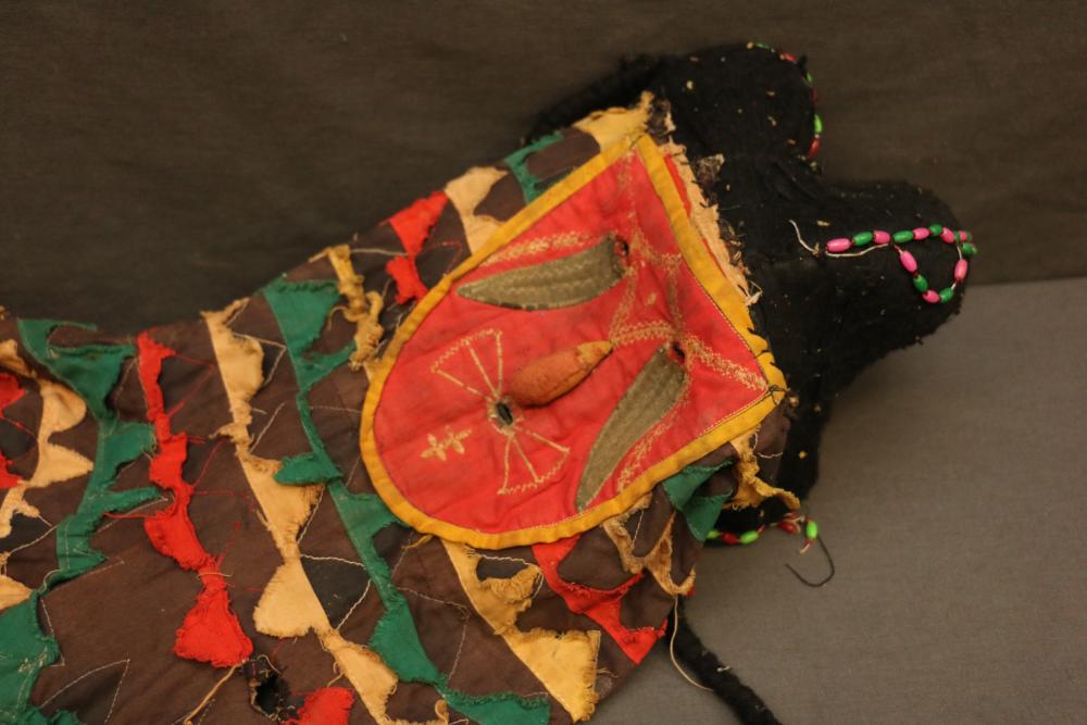 Over 170 lots of African art. Items include women's indigo wraps. Marka/Dafing people, Burkina Faso; Dan headdress, Liberia; large carved Mali-style African drum; old currency spears. Tuareg people, Mali & Niger; rod puppet head of Dankalankule, the Oryx antelope; Bandaka “jellyfish” form currency. Mambila & Chamba people; pendants, Coptic Christian people, Ethiopia; leg band. Mongo & Konda people, Congo; Koranko body mask, Guinea, Sierra Leone; abstract bogolan textile. Bamana people, Mali; ceremonial snake-form bayonet/knife. Lobi people, Burkina Faso; ceremonial blacksmith’s hammer, Northern Nigeria; wedding blanket. Tuareg people, Niger & Mali; West African heddle pulleys. (A) Senufo people, Ivory Coast; maternity figure. Lokko people, Sierra Leone; male Chi Wara head crest mask. Bamana people, Mali; rare Asafo flag bearer/dancer's skirt. Fante people, Ghana & more. Items are located in Pleasant Valley, NY.