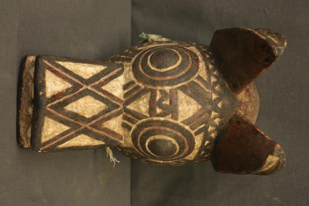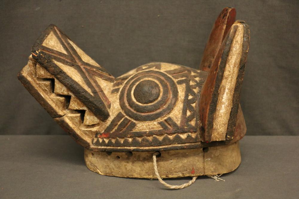 Over 170 lots of African art. Items include women's indigo wraps. Marka/Dafing people, Burkina Faso; Dan headdress, Liberia; large carved Mali-style African drum; old currency spears. Tuareg people, Mali & Niger; rod puppet head of Dankalankule, the Oryx antelope; Bandaka “jellyfish” form currency. Mambila & Chamba people; pendants, Coptic Christian people, Ethiopia; leg band. Mongo & Konda people, Congo; Koranko body mask, Guinea, Sierra Leone; abstract bogolan textile. Bamana people, Mali; ceremonial snake-form bayonet/knife. Lobi people, Burkina Faso; ceremonial blacksmith’s hammer, Northern Nigeria; wedding blanket. Tuareg people, Niger & Mali; West African heddle pulleys. (A) Senufo people, Ivory Coast; maternity figure. Lokko people, Sierra Leone; male Chi Wara head crest mask. Bamana people, Mali; rare Asafo flag bearer/dancer's skirt. Fante people, Ghana & more. Items are located in Pleasant Valley, NY.