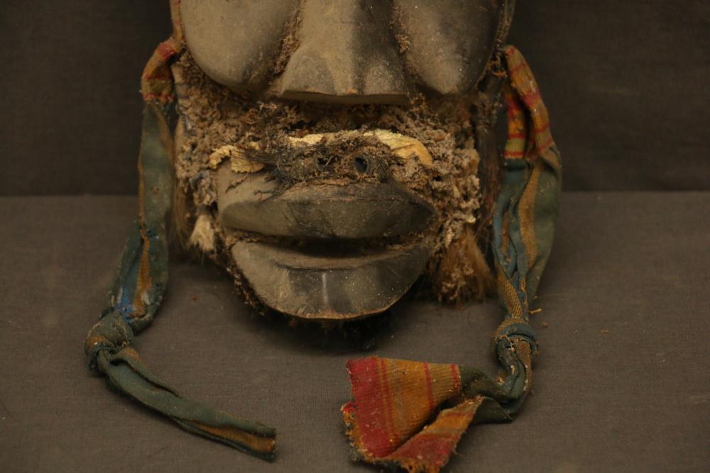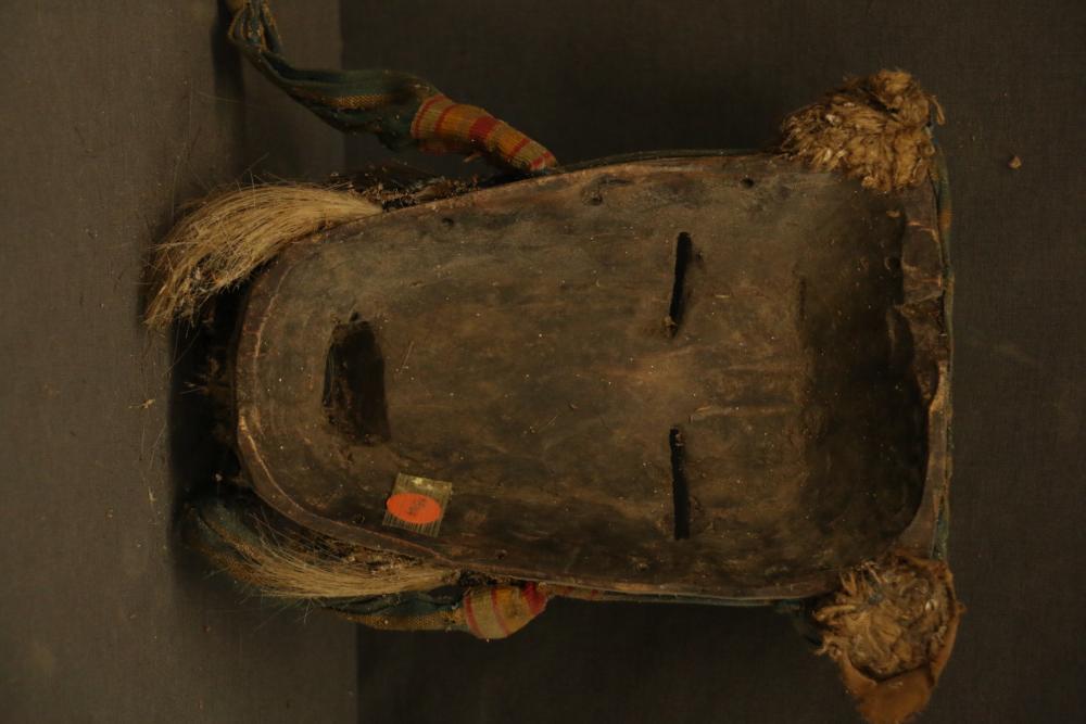 Large face mask, Dan people, Liberia/Ivory Coast with rope, cloth, and wood. Purchased in the 2nd quarter of the 20th C.