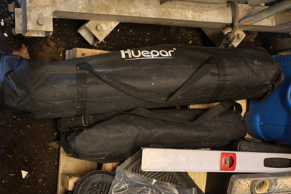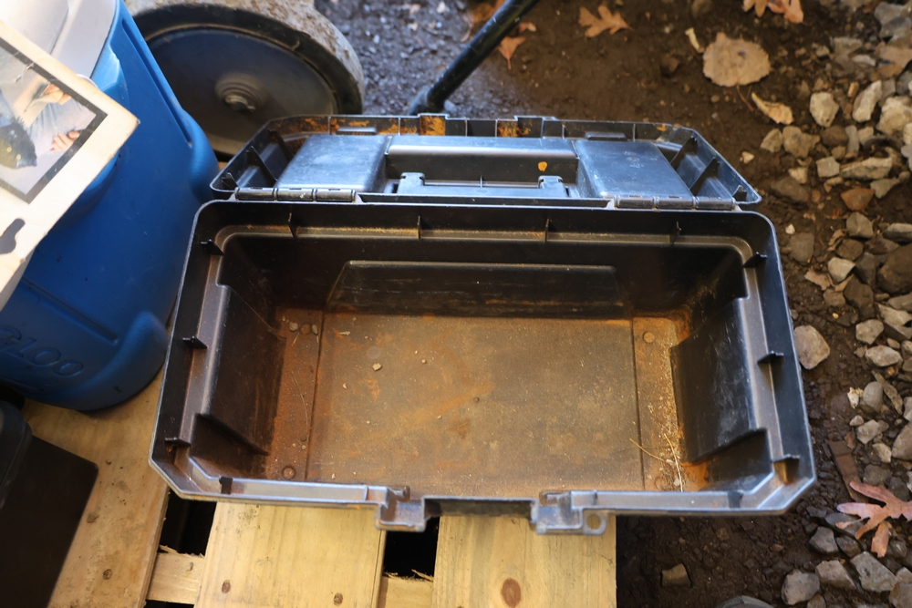 items include Genie PLC-30 personnel lift; Wayne WaterBUG submersible pump; aluminum 32' extension ladders; dump truck tarp system; coiled corrugated hose; DeWalt angle grinders; Snap-on double flaring tool kit, micrometer set; Solo backpack sprayer; Crown C9C towable concrete mixer; assorted lumber including dimensional boards & plywood; shovels, spades, rakes; 1976-1985 Chevrolet K10 pair of pickup truck doors & more. Items are located in Peekskill, NY.