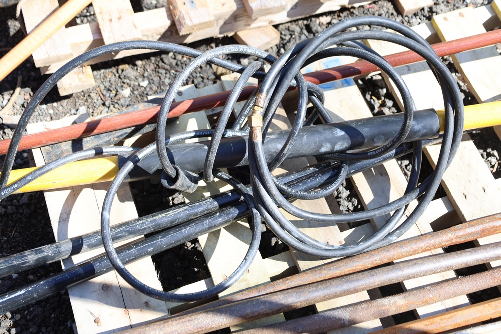 items include Genie PLC-30 personnel lift; Wayne WaterBUG submersible pump; aluminum 32' extension ladders; dump truck tarp system; coiled corrugated hose; DeWalt angle grinders; Snap-on double flaring tool kit, micrometer set; Solo backpack sprayer; Crown C9C towable concrete mixer; assorted lumber including dimensional boards & plywood; shovels, spades, rakes; 1976-1985 Chevrolet K10 pair of pickup truck doors & more. Items are located in Peekskill, NY.