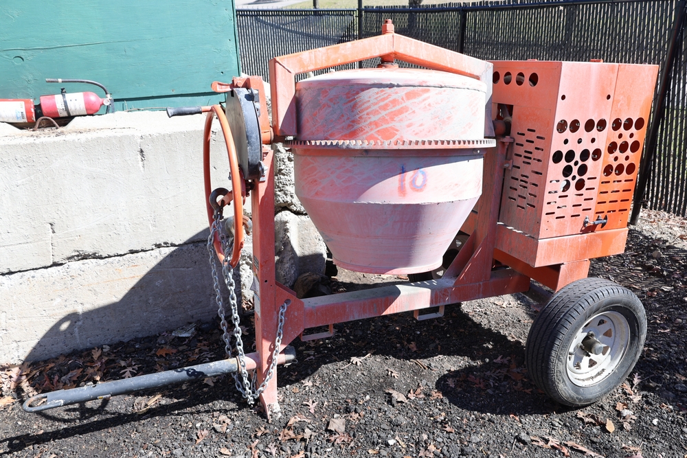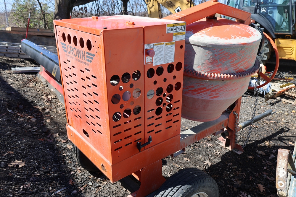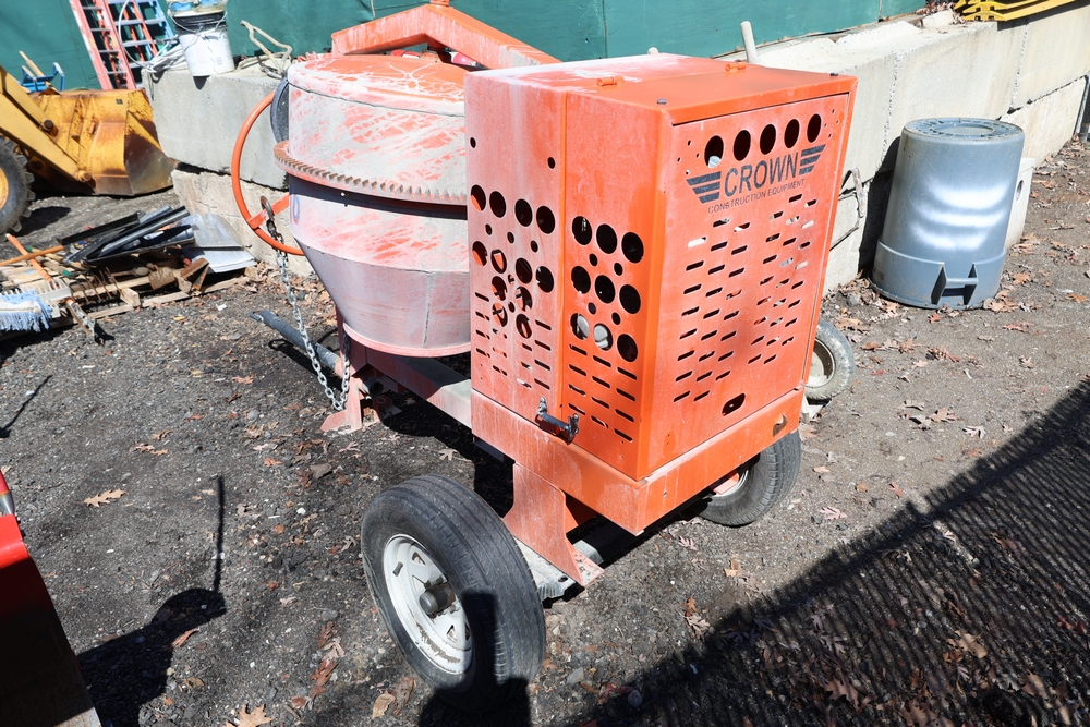 Crown C9C towable concrete mixer with Honda GX240 engine. Seller reports less than 6 months old, in great shape.
