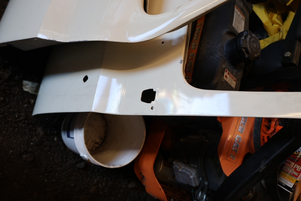 items include Genie PLC-30 personnel lift; Wayne WaterBUG submersible pump; aluminum 32' extension ladders; dump truck tarp system; coiled corrugated hose; DeWalt angle grinders; Snap-on double flaring tool kit, micrometer set; Solo backpack sprayer; Crown C9C towable concrete mixer; assorted lumber including dimensional boards & plywood; shovels, spades, rakes; 1976-1985 Chevrolet K10 pair of pickup truck doors & more. Items are located in Peekskill, NY.