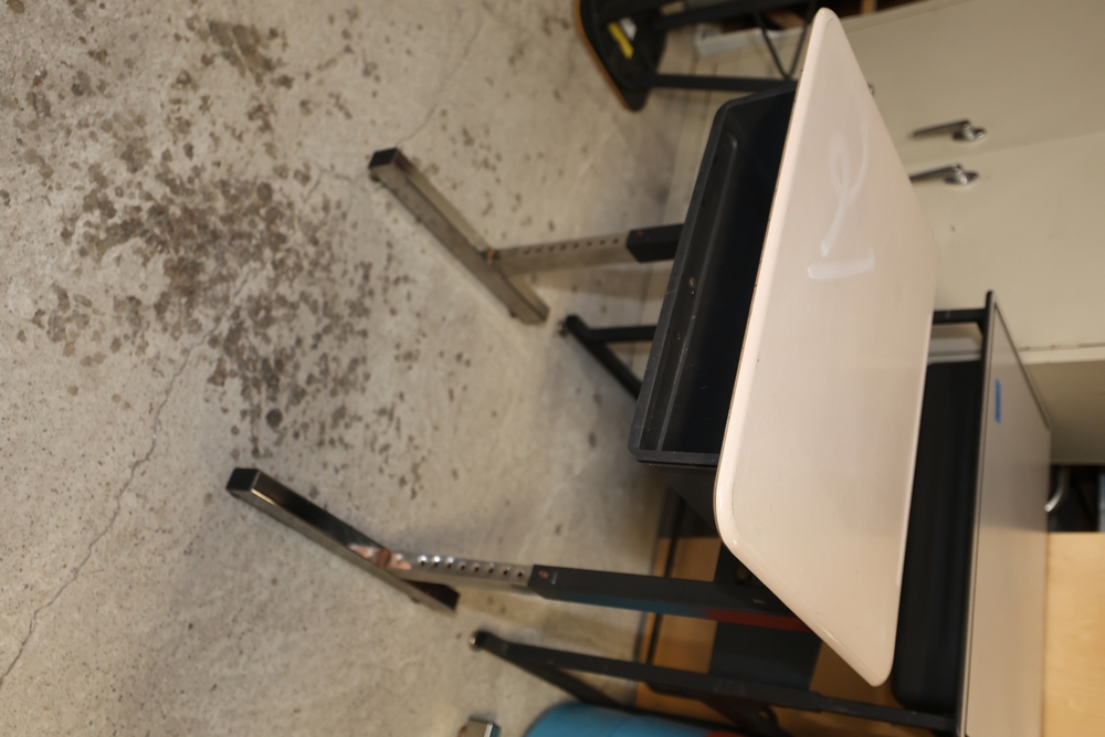 Items include 2001 GMC Savana 3500 Corbeil minibus; Amaco metal enameling kiln, Garland six-burner stove top/range; Traulsen & Co., Inc. six-door refrigerator; Metro Flavor View C 175 heated cabinet; Frigidaire window A/C unit; Clarke carpet extractor; theatrical light bars; custom wood drafting table/cabinet; Concept 2 rowing fitness machine & Lifefitness treadmill; truck-mounted Brine liquid sprayer; iPhones & Verizon cellular flip-phones/accessories; baseball playing machine; Western snow plows; computer tables; SunLite LED three-tier garden rack; art shelves; multicolored plastic choral risers; student desks; metal folding chairs & more. Items are located in Yorktown Heights, NY.