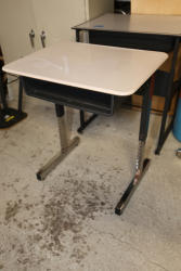 (2) wooden teacher's desk (4-drawer), Location: FH Boiler Room.
