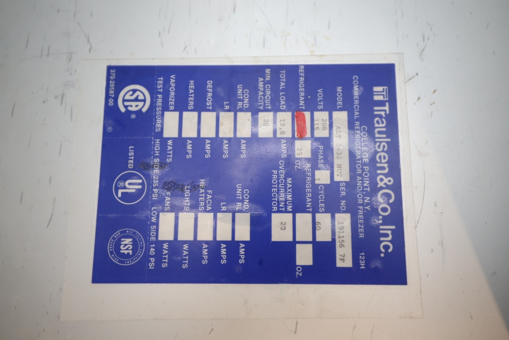 Traulsen & Co., Inc. six-door refrigerator, S/N: 1911567F, Model: #ALT3-32NUT, Location: FH Garage.