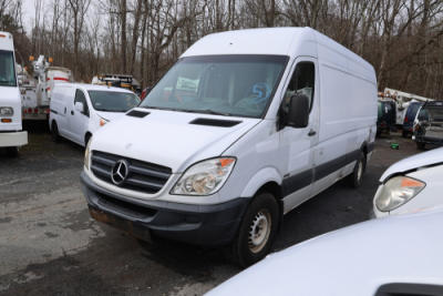 2012 Mercedes-Benz Sprinter 2500 High Roof 170-in. WB with a 3.0L V6 DOHC 24V turbo diesel engine. VIN: WD3PE8CB6C5710775. Odometer reading: 217106. Body: cargo van. High roof extended cargo van, rear cargo area with shelving, sliding side door, rear swing-out doors, interior shelving racks, dash-mounted radio, climate control knobs, and gear shifter on dash. Runs and drives. Transfer will be done through NJ dealership paperwork. May not pass NYS Inspection.