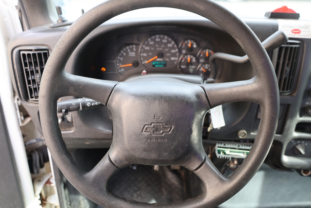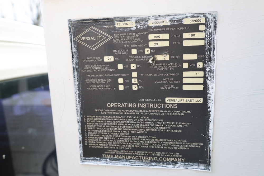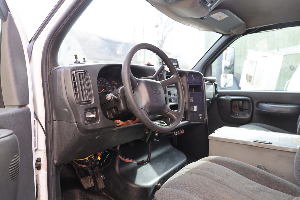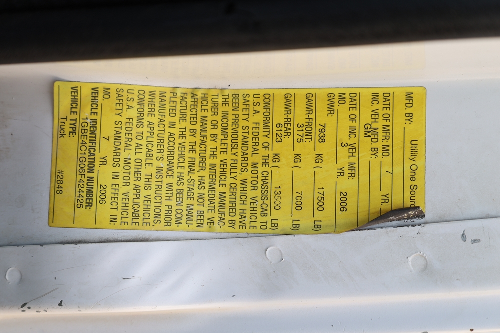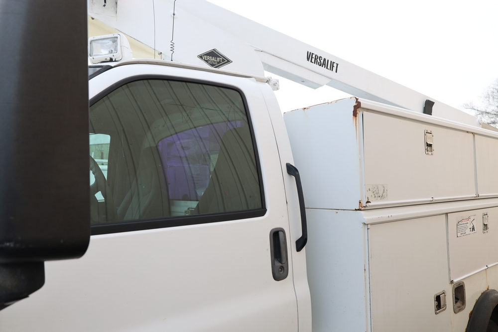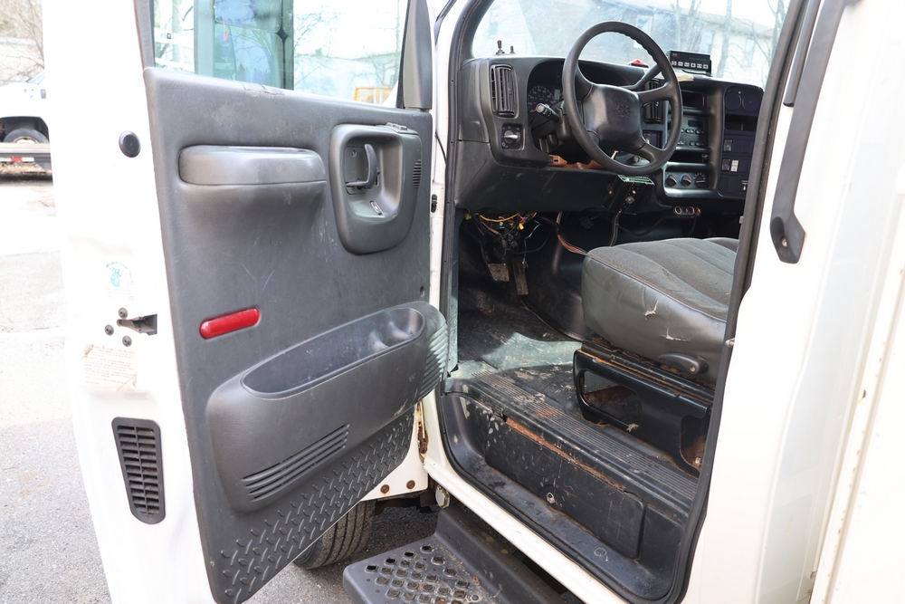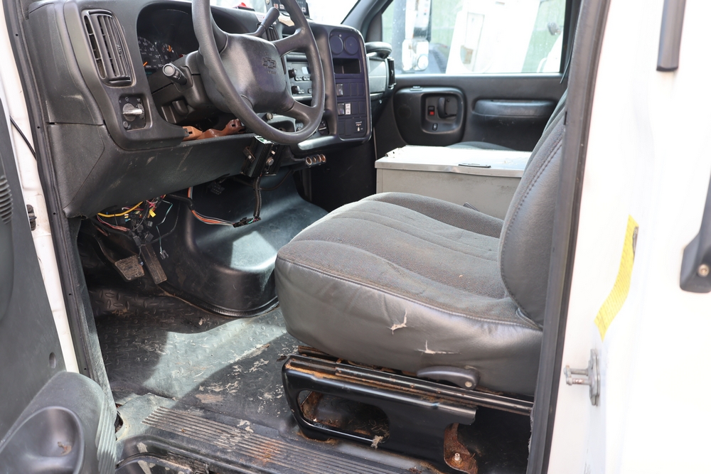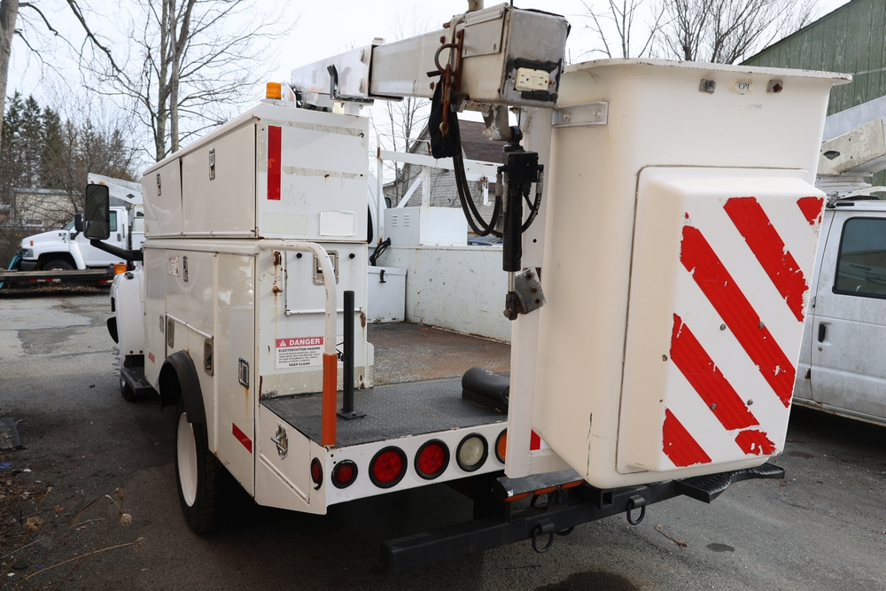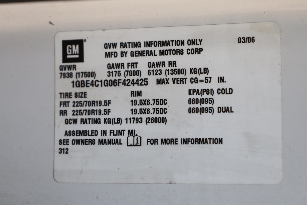 2006 Chevrolet C4C042 bucket truck with a 8.1L V8 OHV 16V engine. VIN: 1GBE4C1G06F424425. Odometer reading: 189880. Body: chassis and cab. Utility body with side compartments, Versalift boom and bucket, rear platform area, dual rear wheels, control panel at rear, interior controls, and dash-mounted control unit. Runs and drives. Transfer will be done through NJ dealership paperwork. May not pass NYS Inspection.