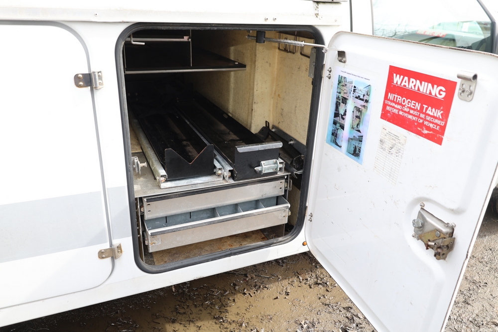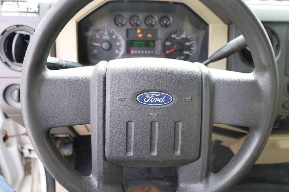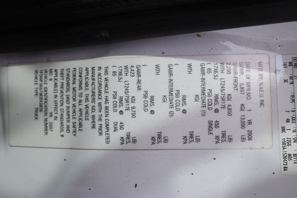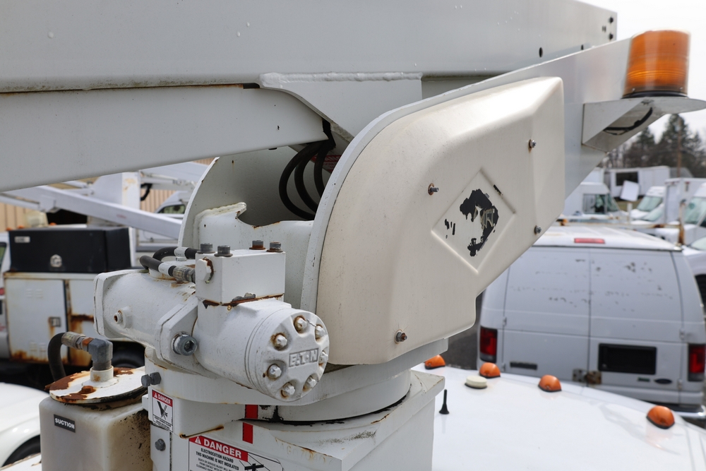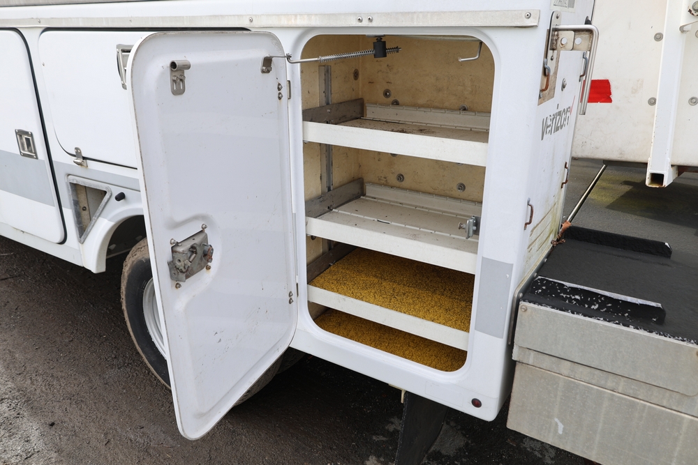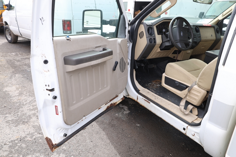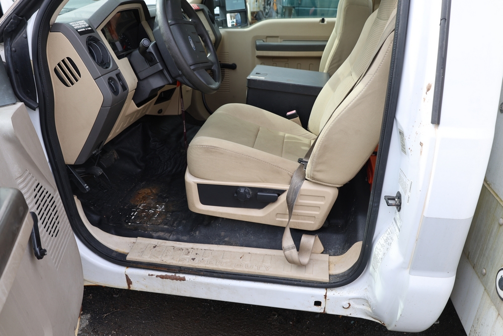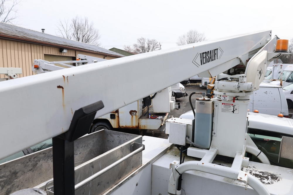 2008 Ford F-350 Super Duty XL DRW 2WD with a 5.4L V8 SOHC 24V engine. VIN: 1FDWF36578EB43826. Odometer reading: 90267.5. Body: chassis and cab. Utility body with side compartments, Versalift boom and bucket, dual rear wheels, rear control panel with Hobbs meter, interior center console, dash-mounted radio, climate control knobs, auxiliary switches Runs and drives. Transfer will be done through NJ dealership paperwork. May not pass NYS Inspection.
