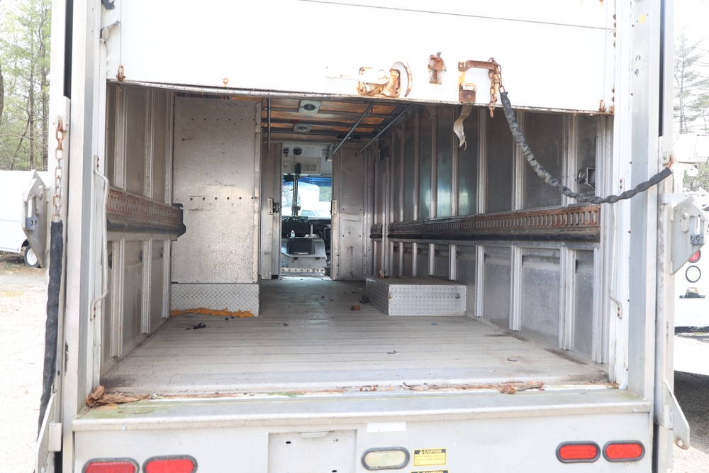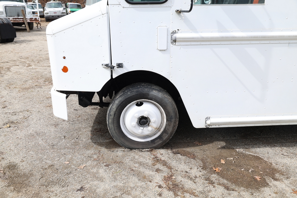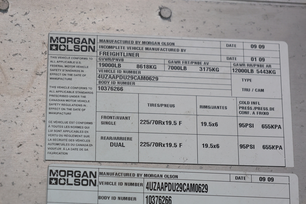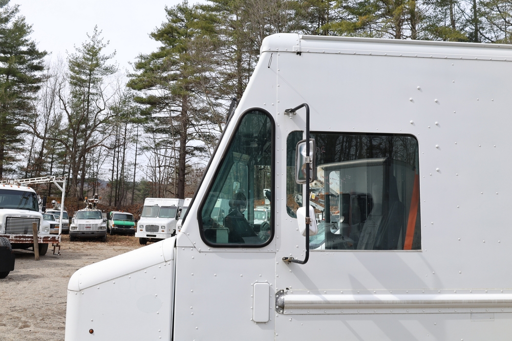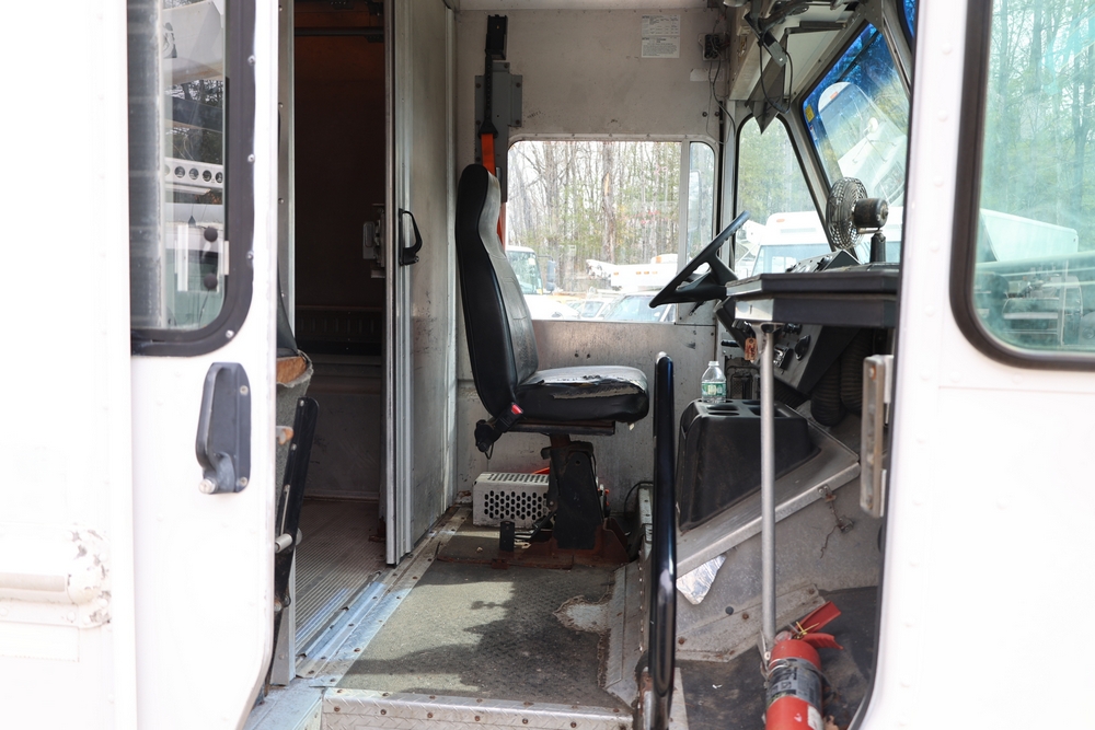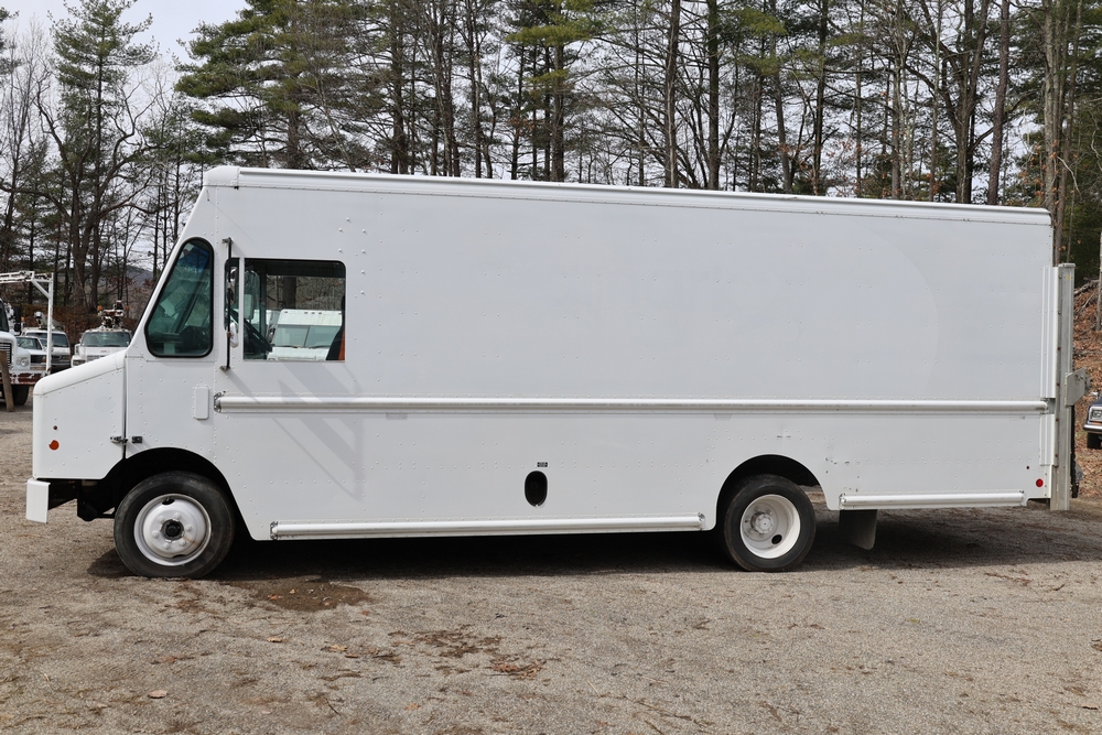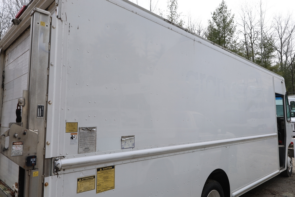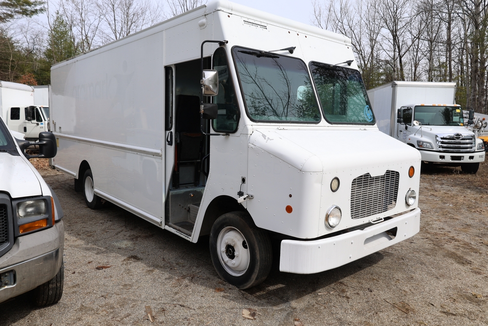 2009 Freightliner MT45 step van with Morgan Olson body. 6.7L diesel engine. Automatic transmission. Odometer reading 275,156 miles. Enclosed cargo area with rear roll-up door, side access door, interior shelving rails, and bulkhead door to cab. Runs and drives. Transfer will be done through NJ dealership paperwork. May not pass NYS Inspection.