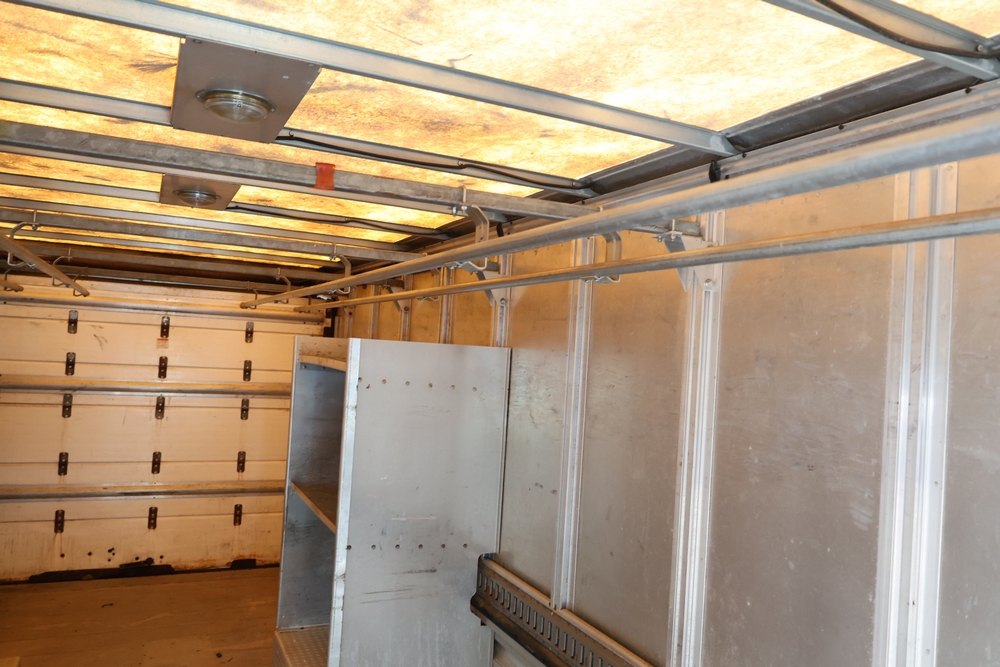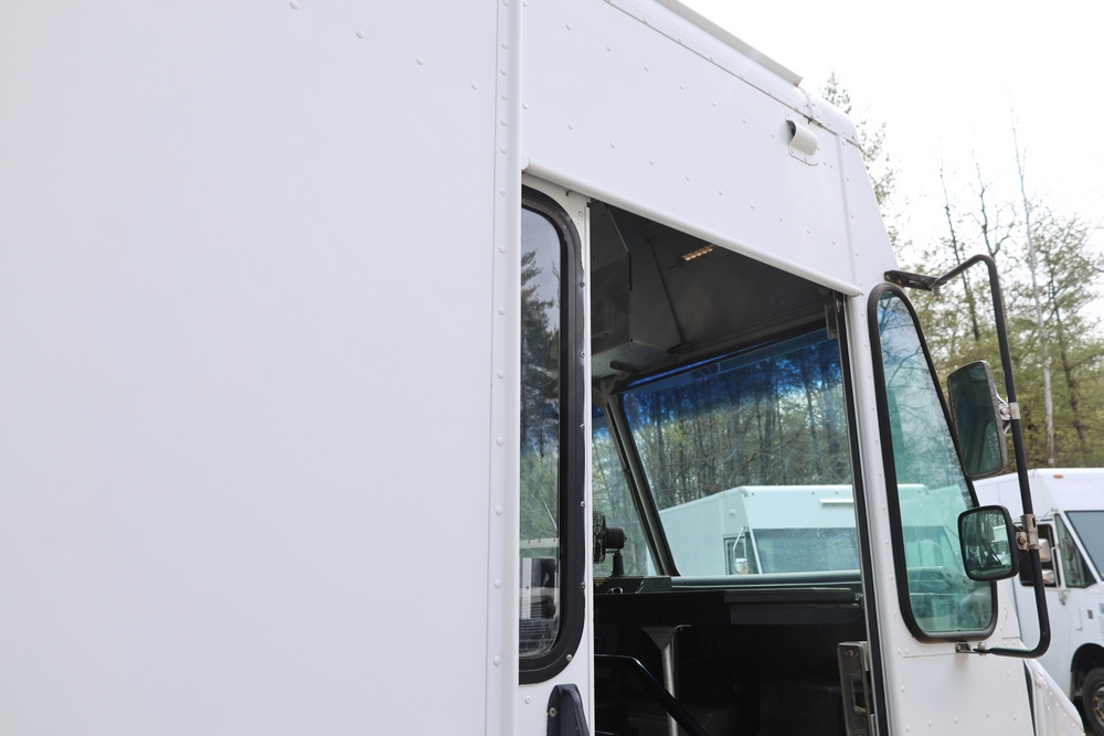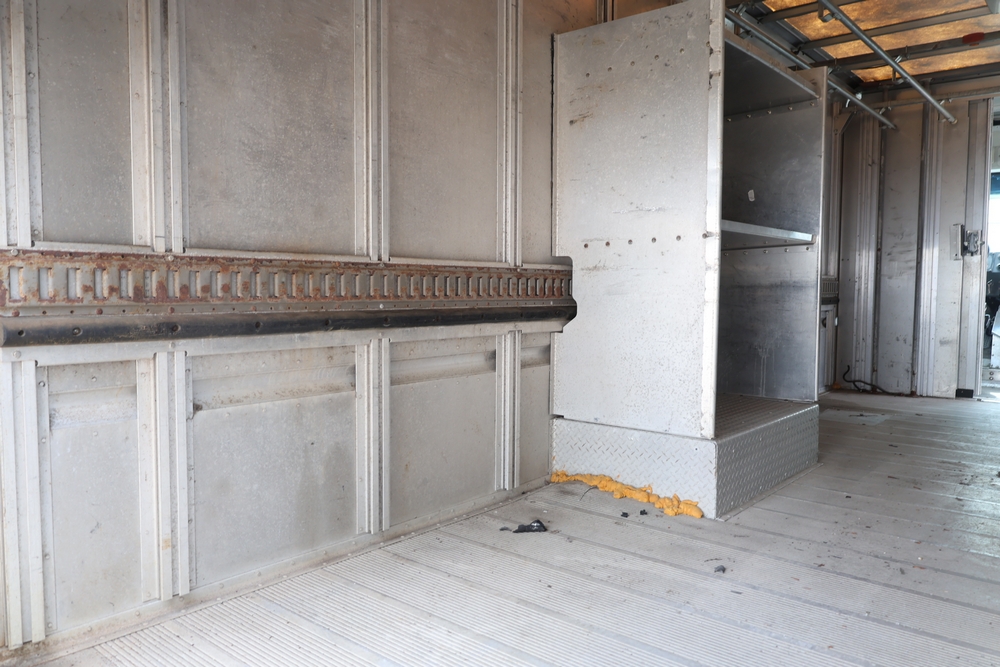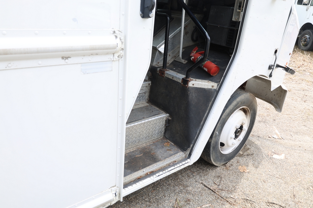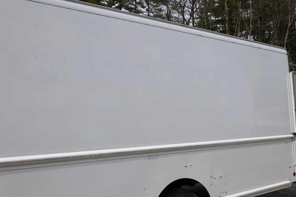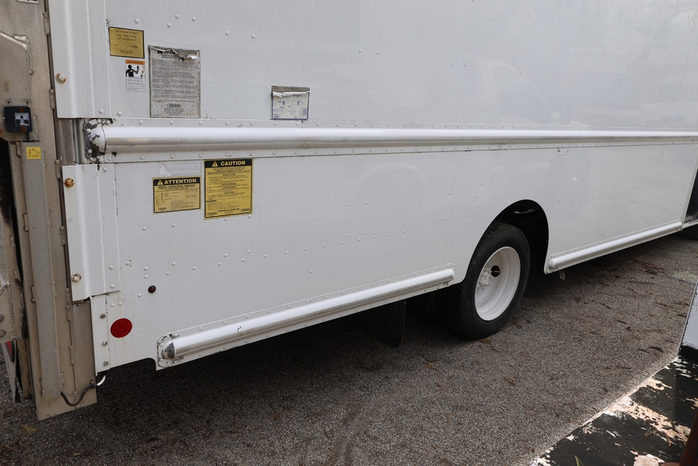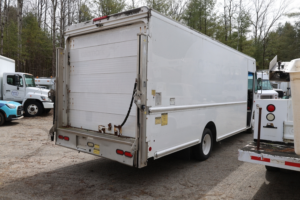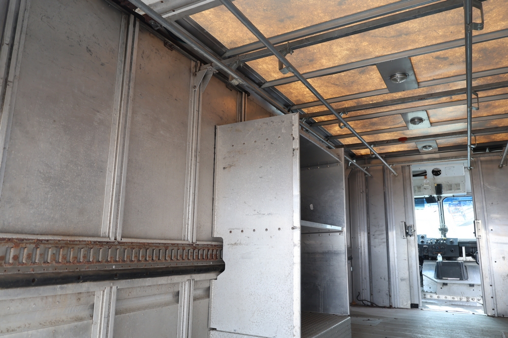 2009 Freightliner MT45 step van with Morgan Olson body. 6.7L diesel engine. Automatic transmission. Odometer reading 275,156 miles. Enclosed cargo area with rear roll-up door, side access door, interior shelving rails, and bulkhead door to cab. Runs and drives. Transfer will be done through NJ dealership paperwork. May not pass NYS Inspection.