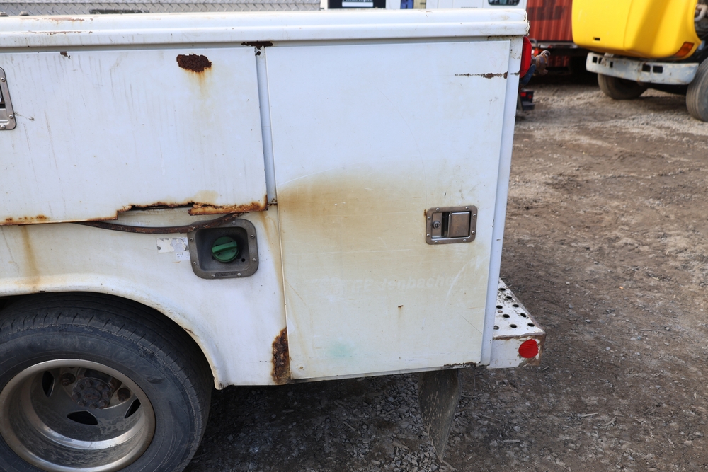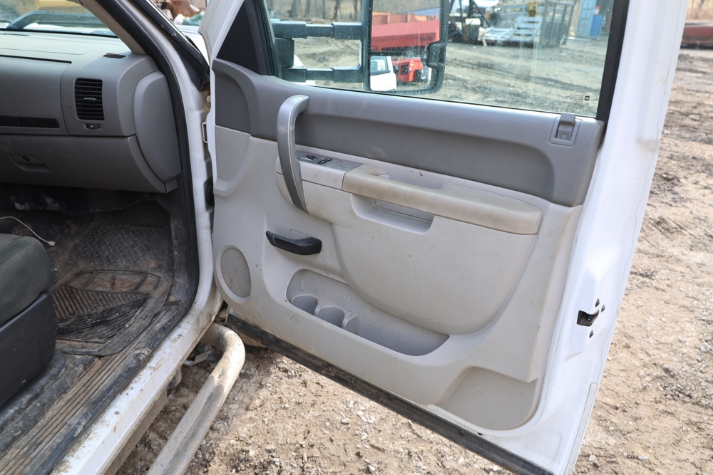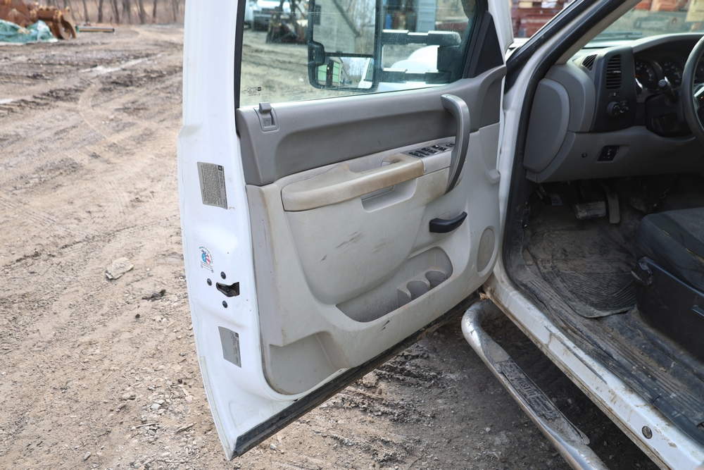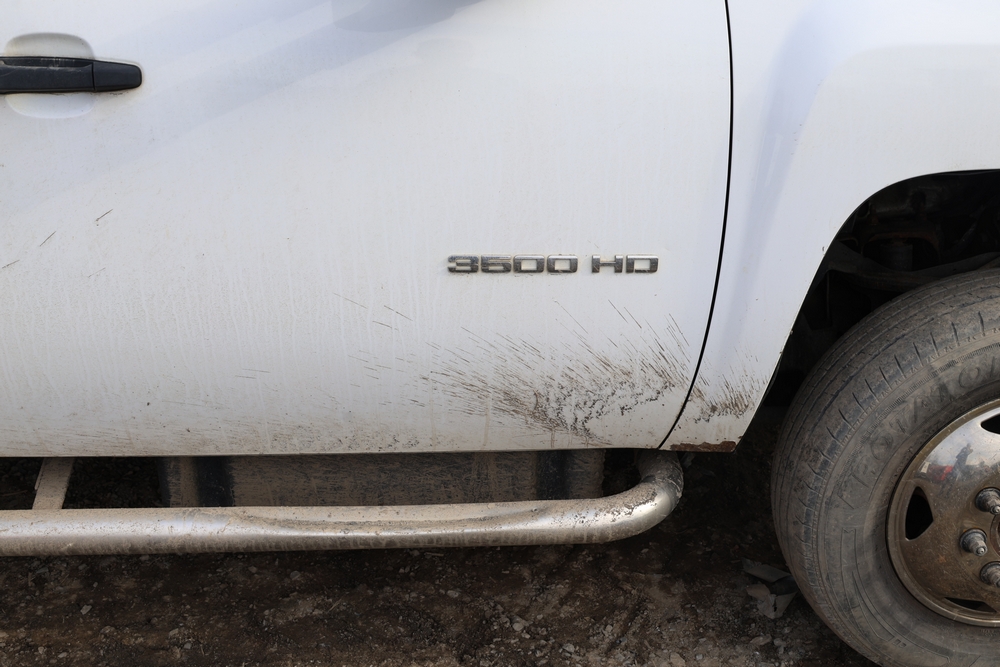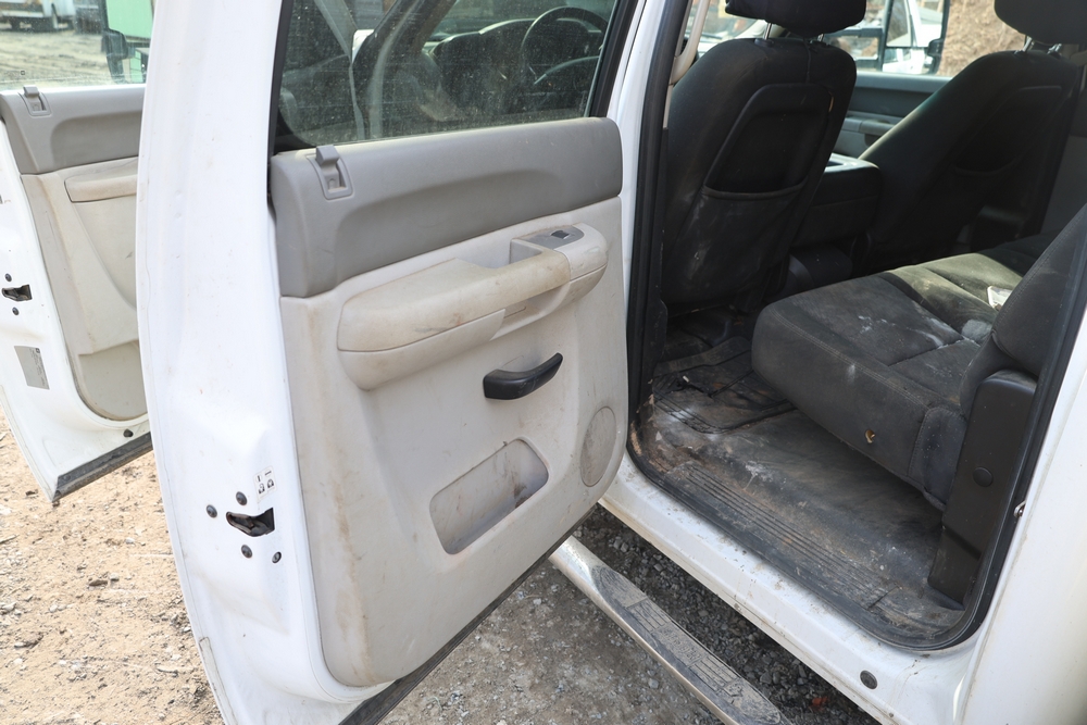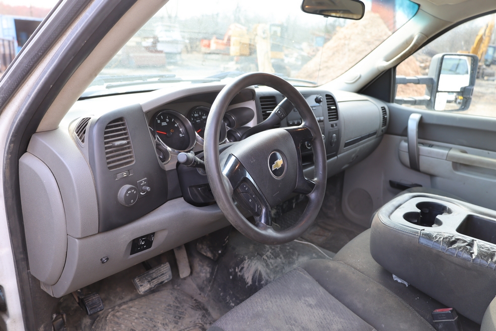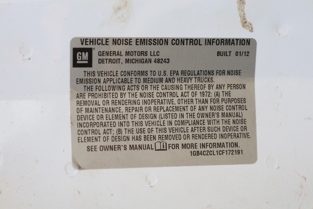 2012 Chevrolet Silverado 3500HD Work Truck Crew Cab 2WD service truck with a 6.6L V8 OHV 32V TURBO DIESEL engine. VIN: 1GB4CZCL1CF172191. Odometer reading: 276690. Body: crew cab pickup 4-dr. RWD, 6-speed automatic transmission, locking differential, utility body, dual rear wheels, running boards, tow hooks, 100 gallon fuel transfer tank with pump and nozzle, diamond plate crossover toolbox, beacon light, steel wheels, tow hitch receiver, air conditioning, cruise control, tilt steering, AM/FM radio, power door locks. Runs and drives. Title and key available.