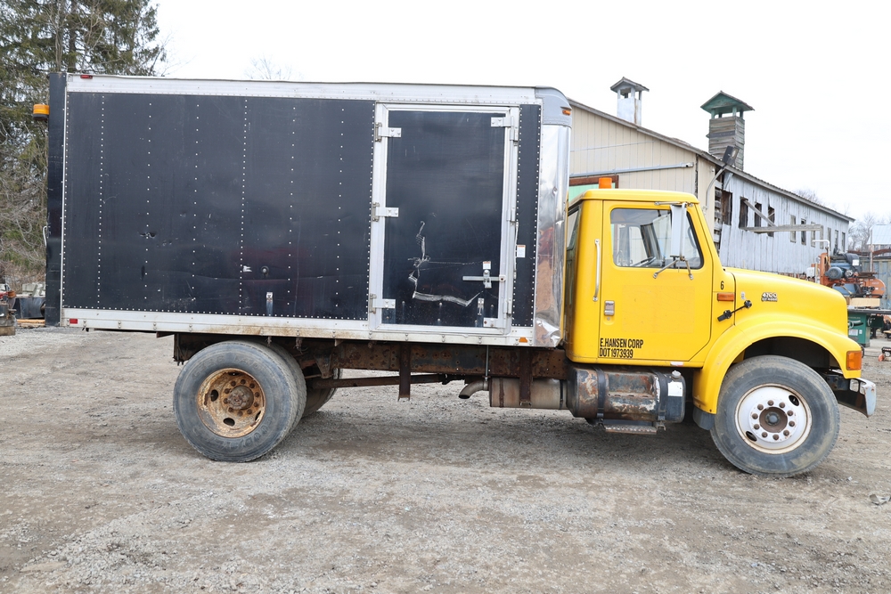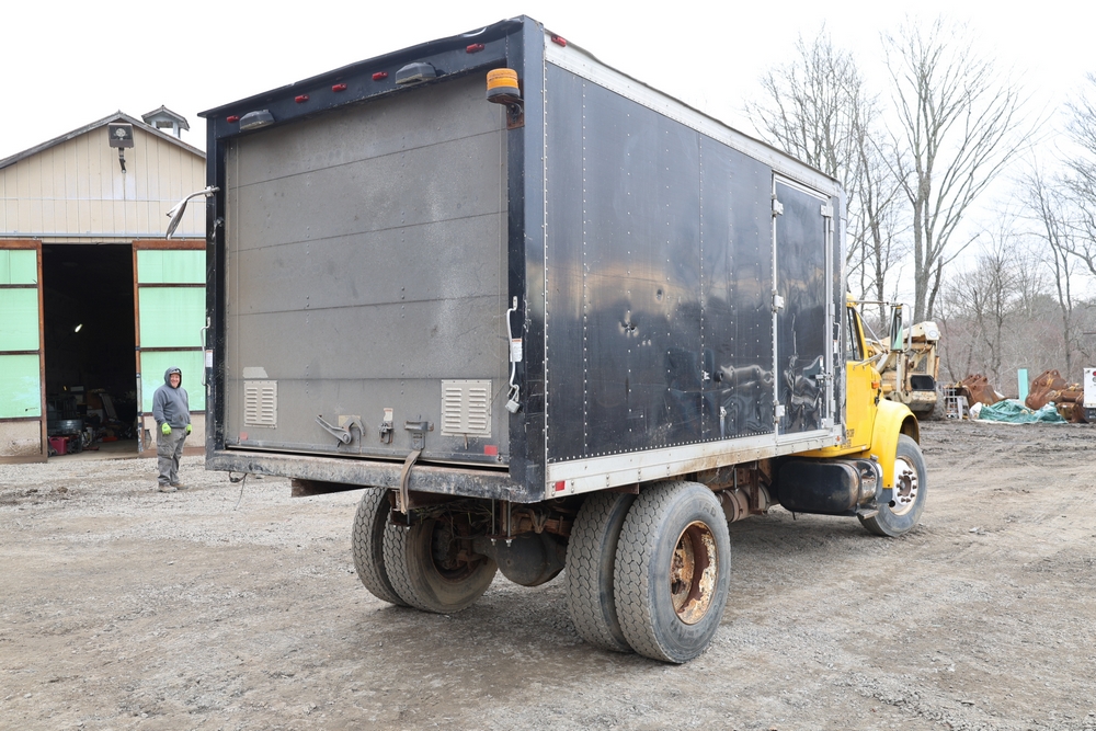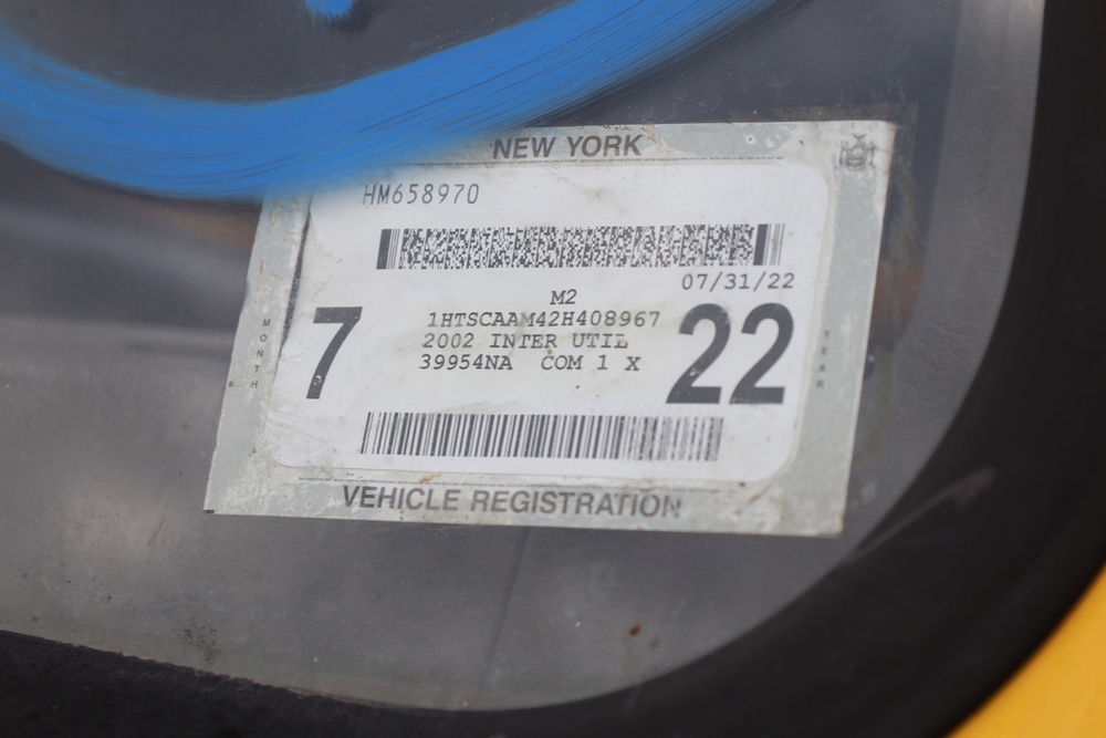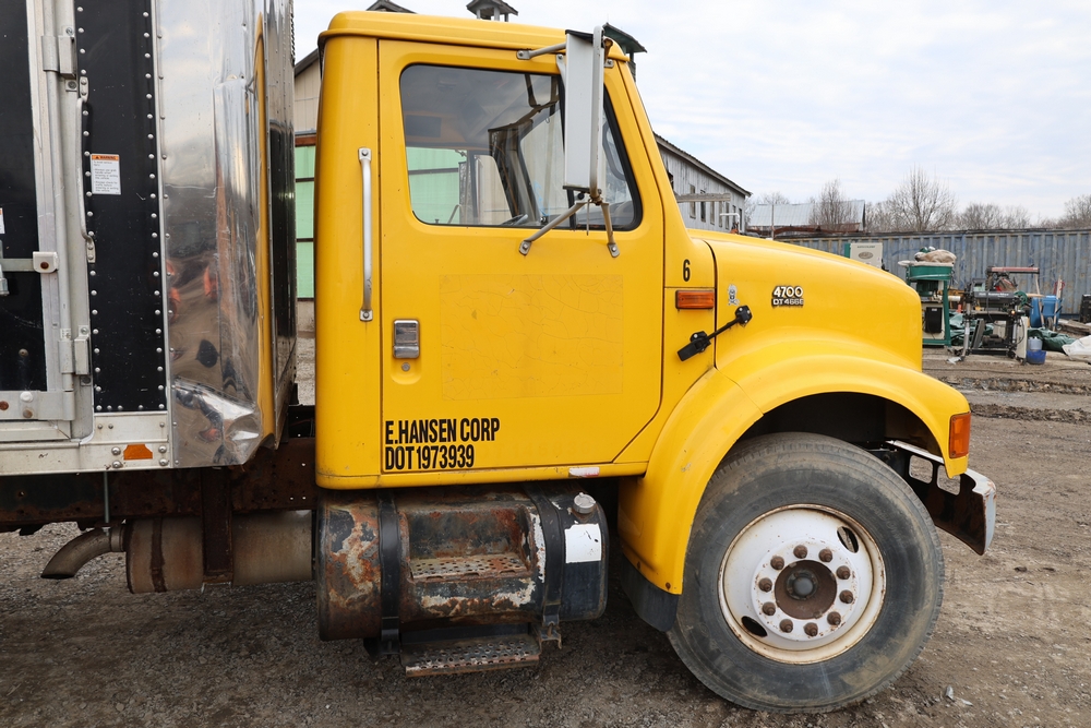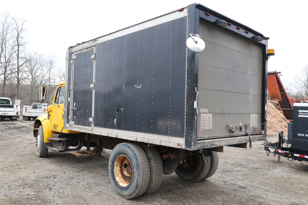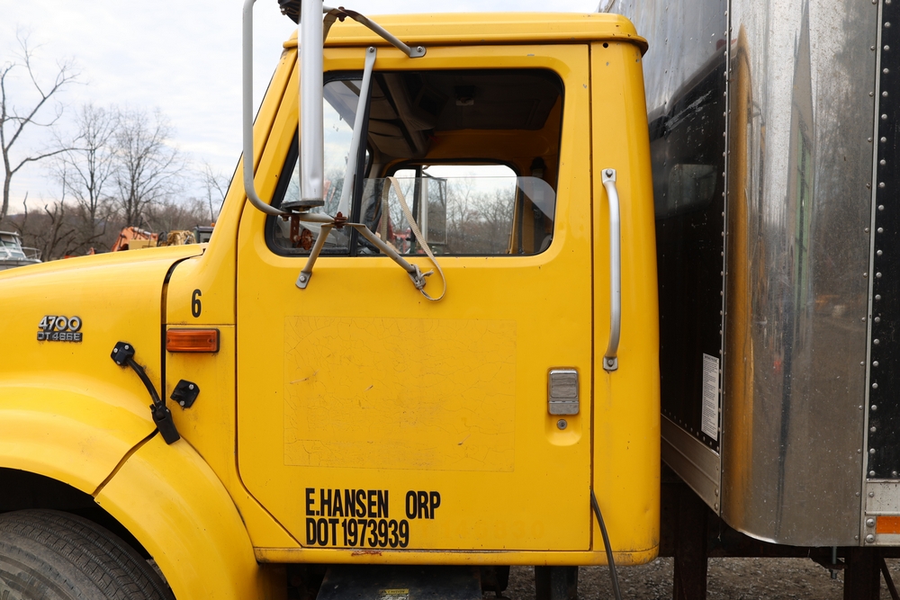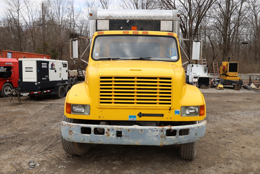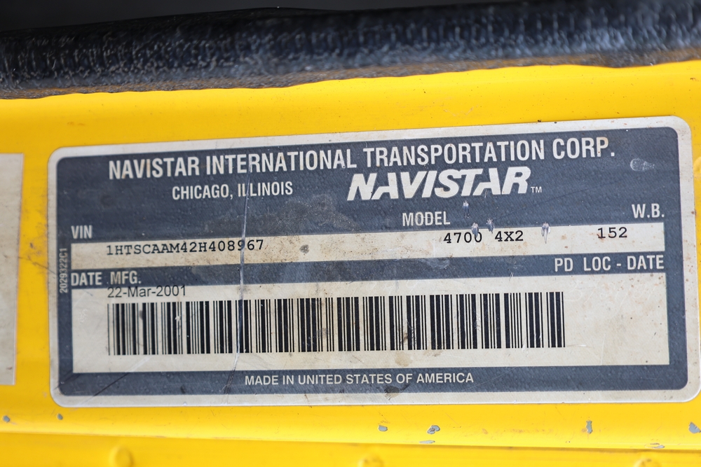 2002 International 4700 with a 7.6L L6 DIESEL engine. VIN: 1HTSCAAM42H408967. Odometer reading: 26159. Body: conventional cab. 4X2, Morgan box body, side access door, roll-up rear door, amber beacon, automatic transmission. Runs and drives but does not have brakes. Must be towed. Title and key available.