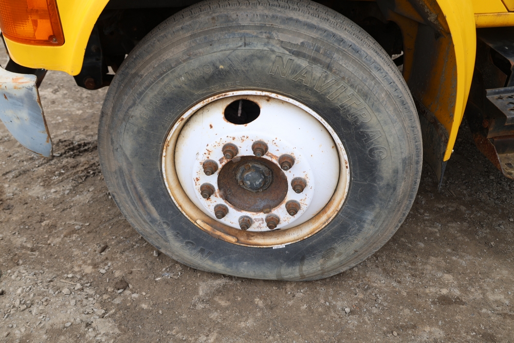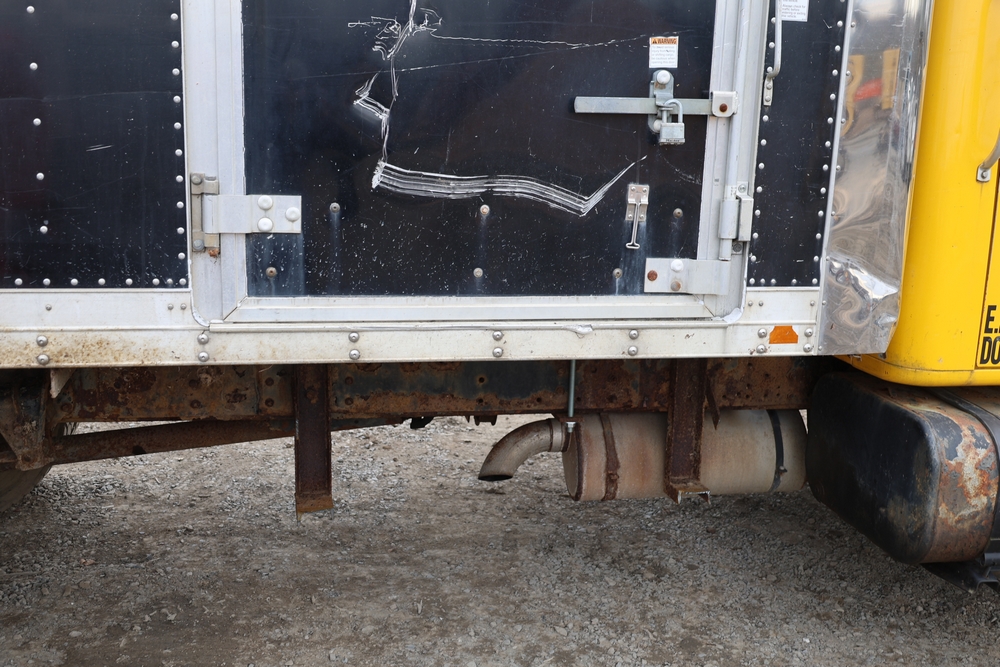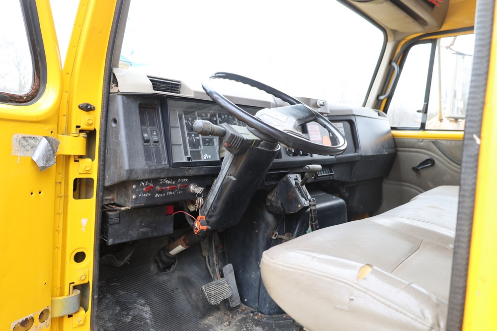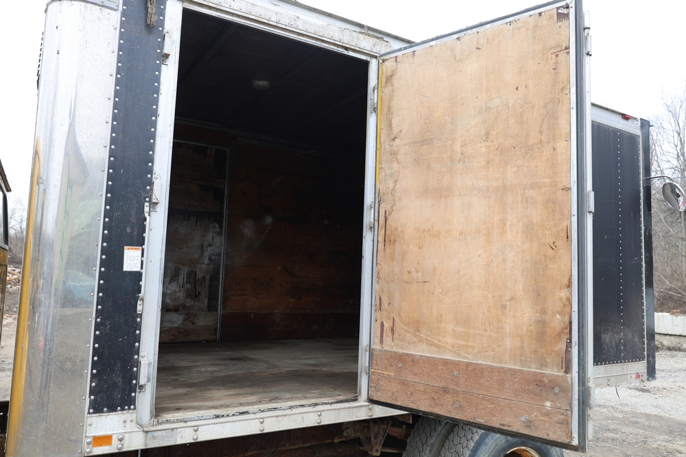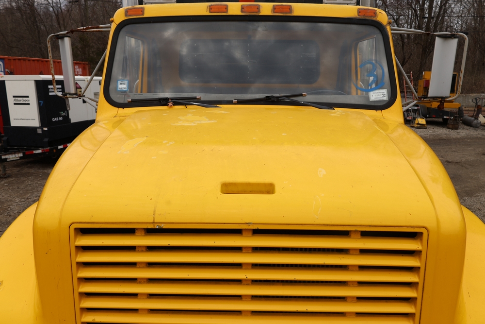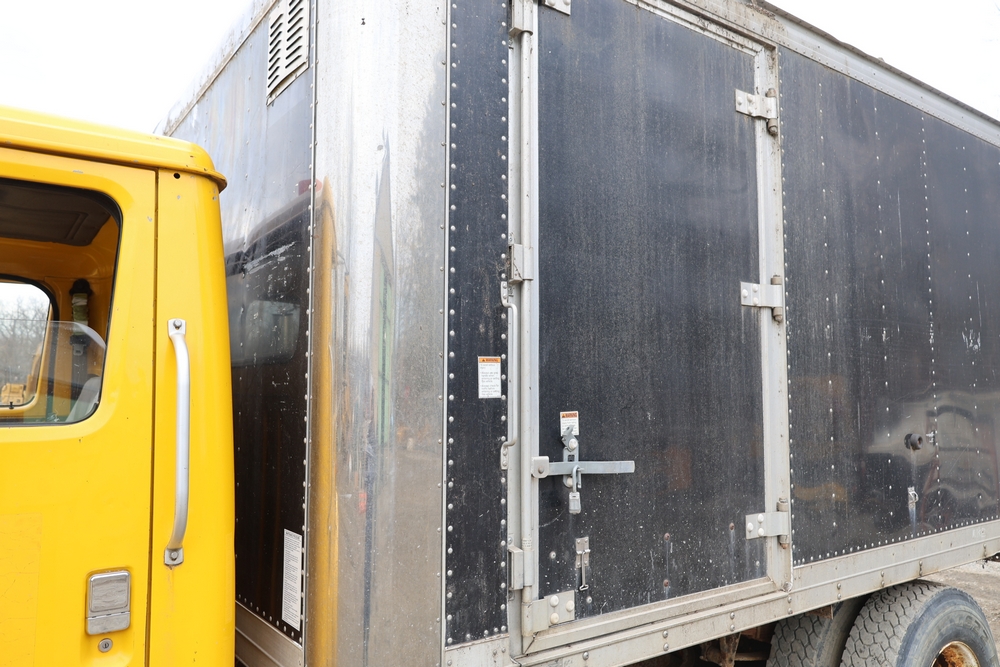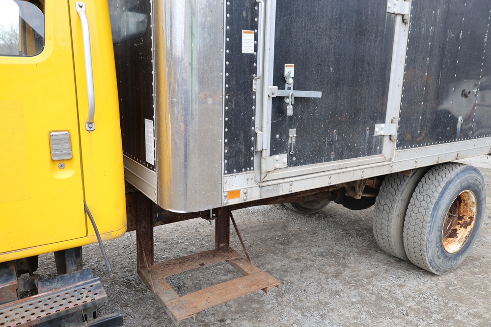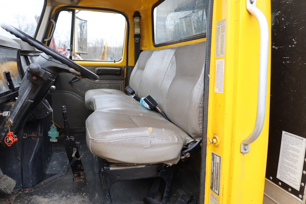 2002 International 4700 with a 7.6L L6 DIESEL engine. VIN: 1HTSCAAM42H408967. Odometer reading: 26159. Body: conventional cab. 4X2, Morgan box body, side access door, roll-up rear door, amber beacon, automatic transmission. Runs and drives but does not have brakes. Must be towed. Title and key available.