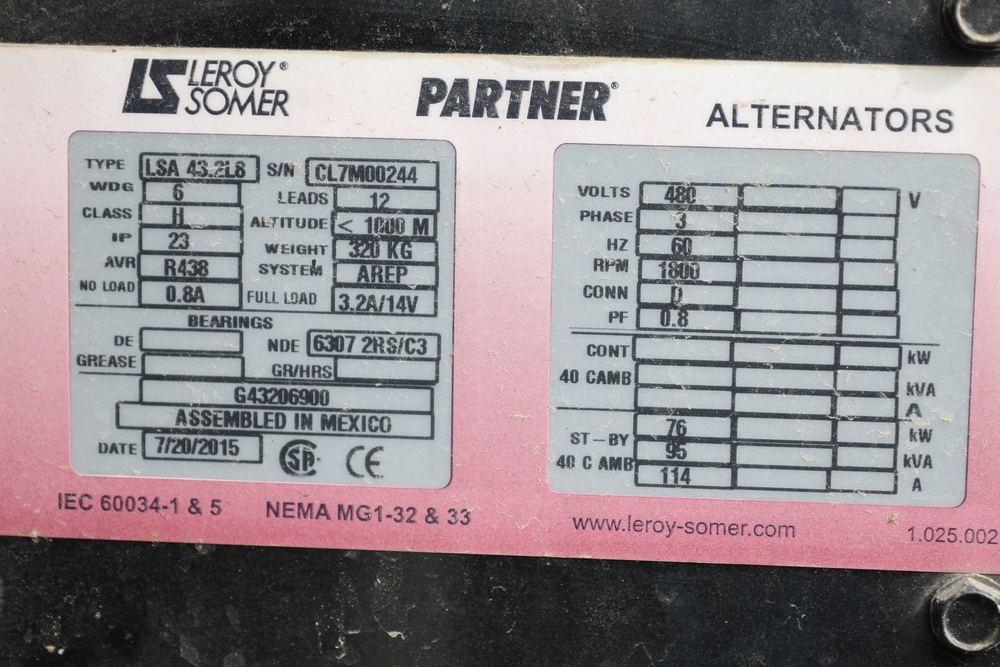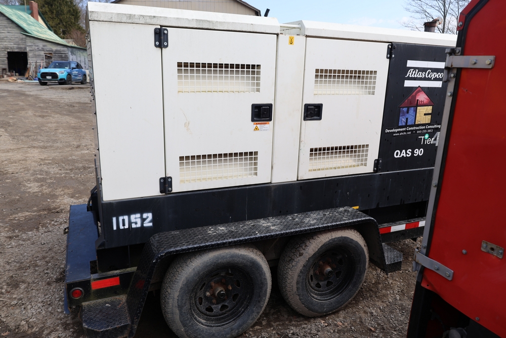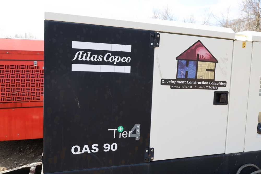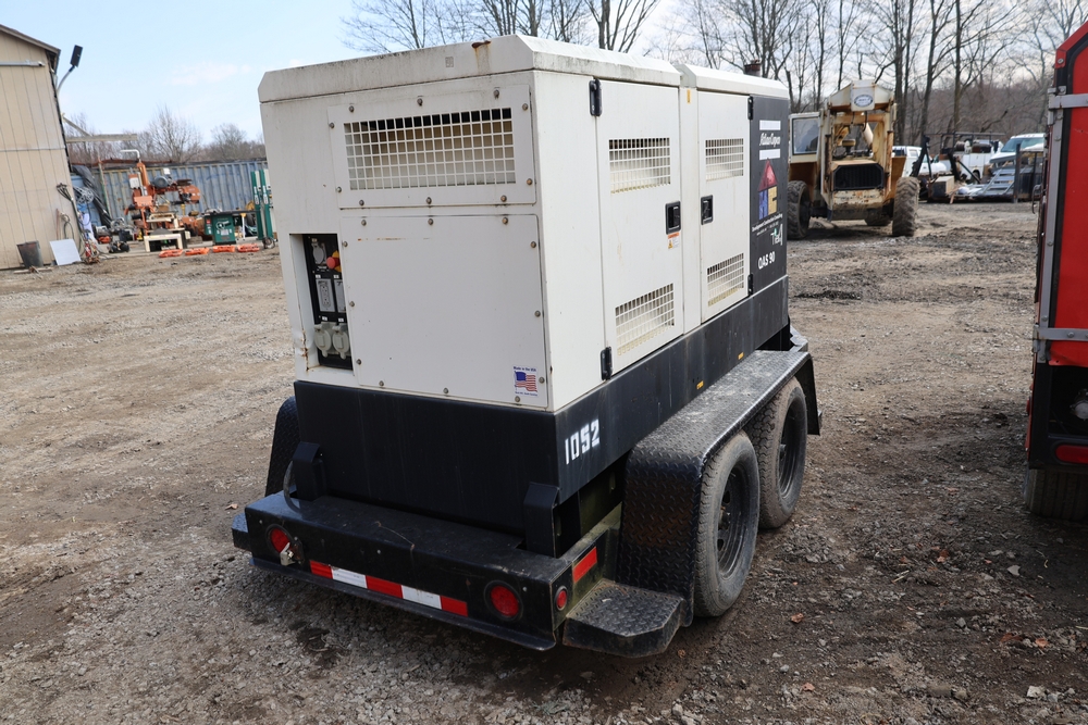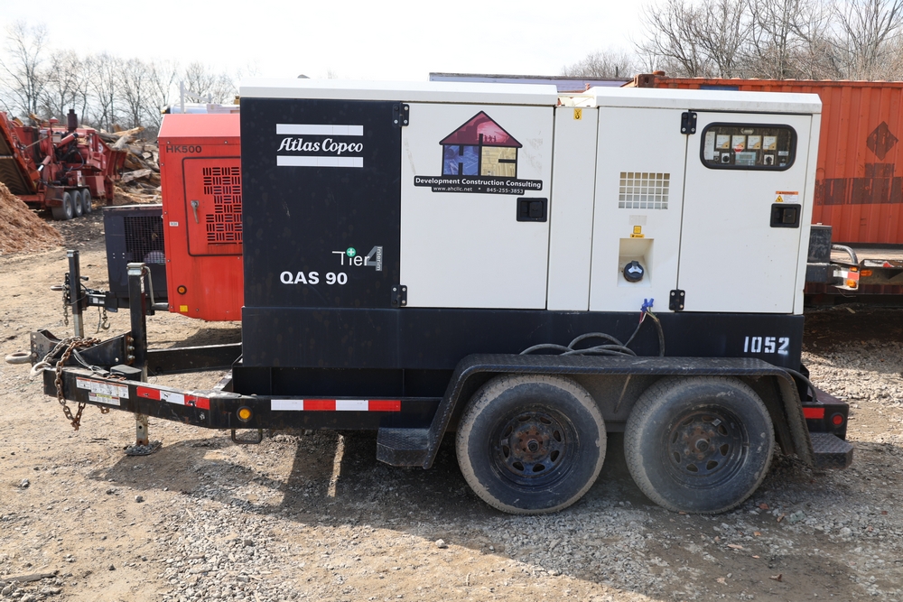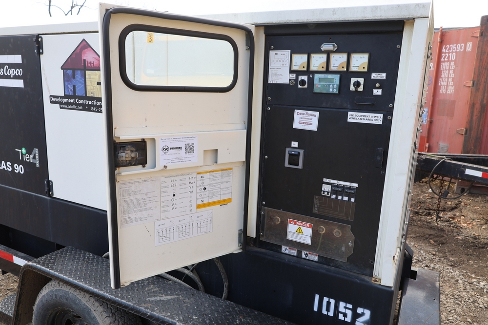 Atlas Copco 60Kw AC generator, model QAS 90 IT4 WEB trailer, product number 8972822890, serial number HOP102855, year 2015, 72 kW / 90 kVA, trailer mounted, tandem axle, hour meter reading 6044.0 hours. 110/220 or 3 phase, 400 Amp breakers, John Deere engine, and 250 gallon fuel capacity. Seller reports: Operational.