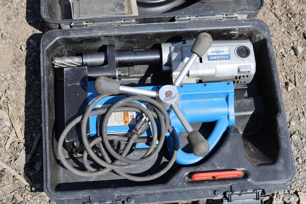 Items include 2012 Chevrolet Silverado 3500HD work truck crew cab; 2006 GMC C5C042 service truck; Ingersoll-Rand VR-90B rough terrain forklift; DryAir Greenthaw heat thaw unit; Grizzly G0671 4 HP dust collector; Wacker Neuson WP1550 plate compactor; Woodmaster W-718 planer; Shop Fox W1674 shaper; scaffold frames; submersible pumps; lay flat hoses; Tapco aluminum siding brake; concrete blankets; Paslode IM250A Li 16 gauge cordless angled finish nailer; Smith cutting torch with hoses & regulators; Propane tank with hose & burner stand; Hougen HMD904 magnetic drill; traffic cones; pallet jacks; Better Built fluid transfer tank; Neptune water meter assembly & more. Items are located in New Paltz, NY.