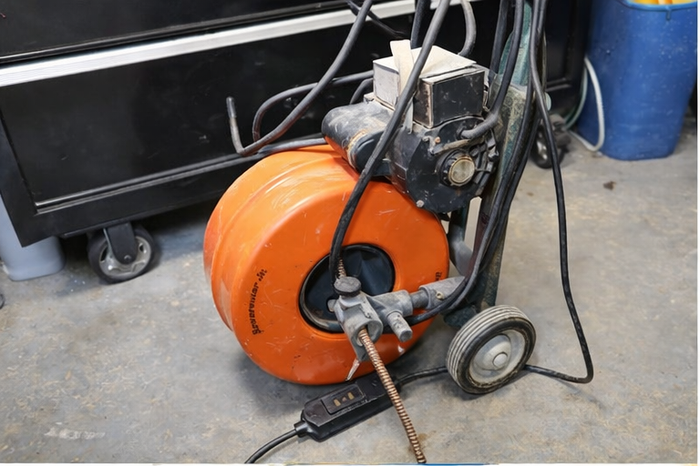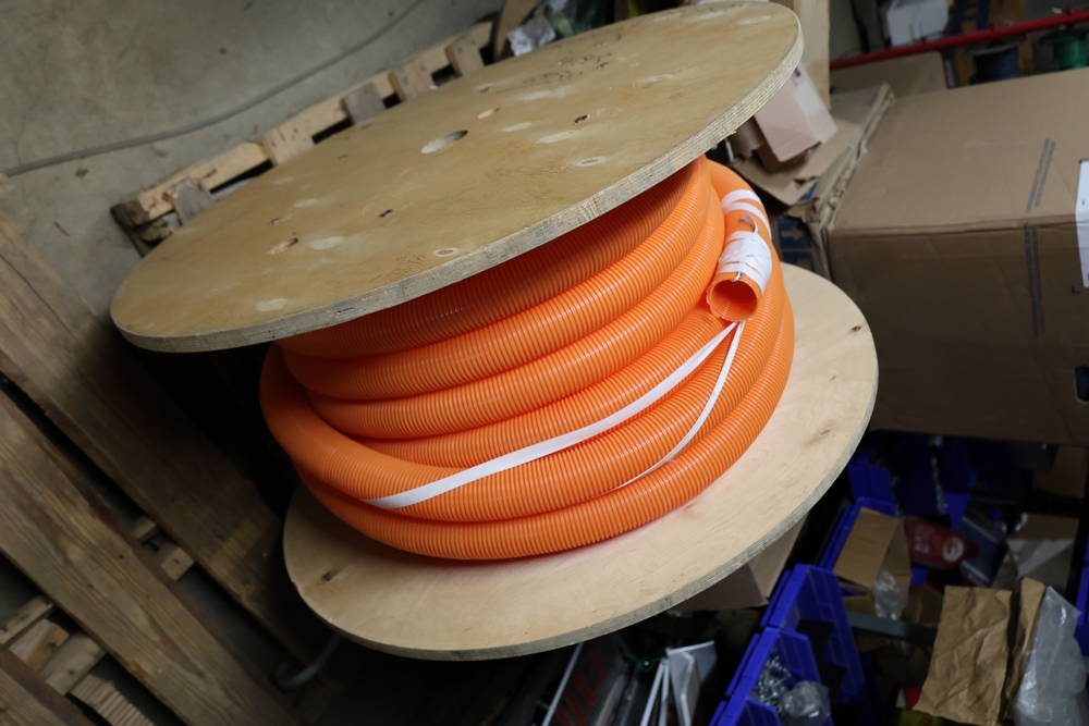 Spool of orange hose.
