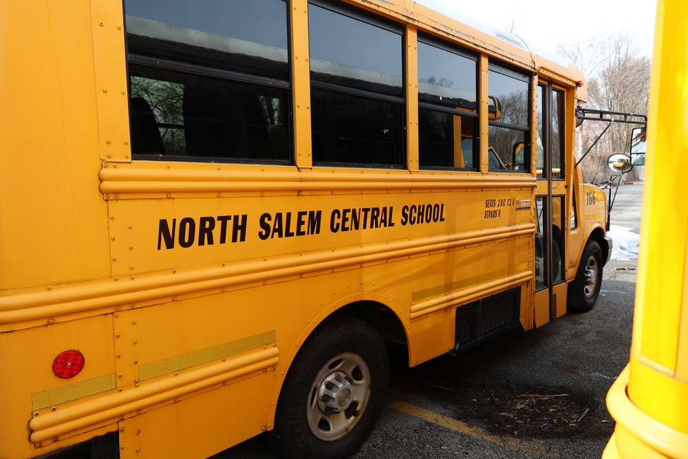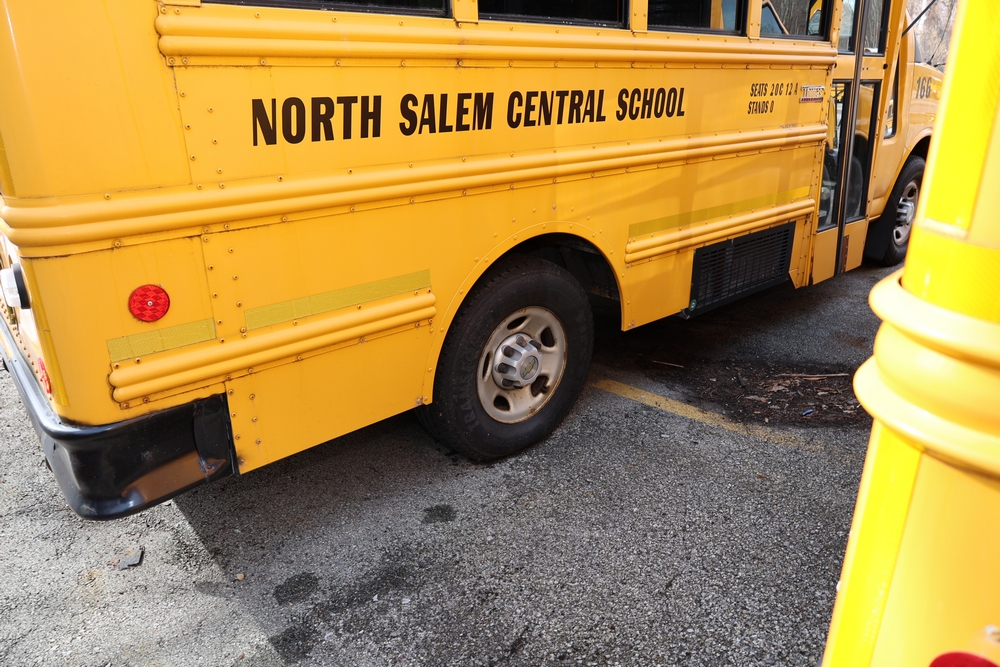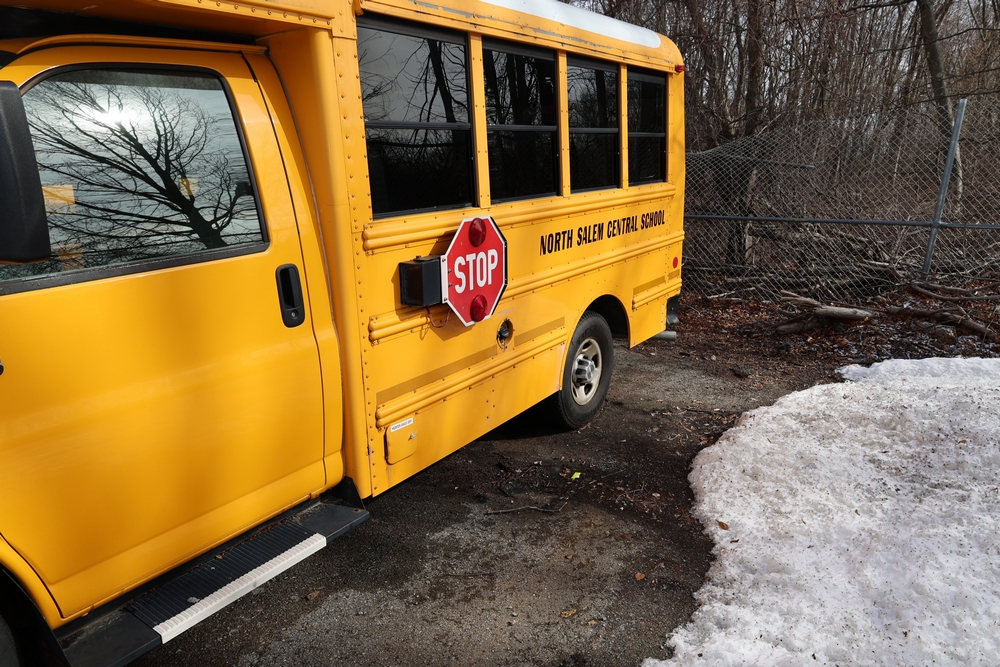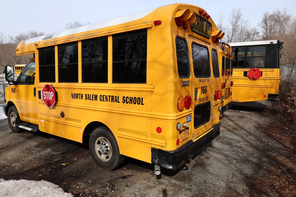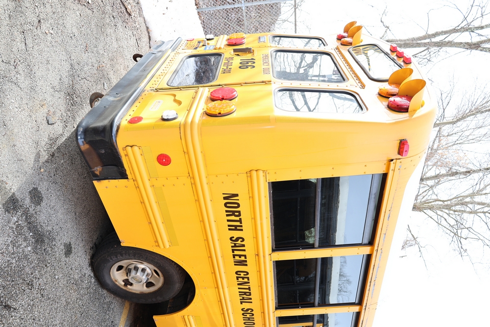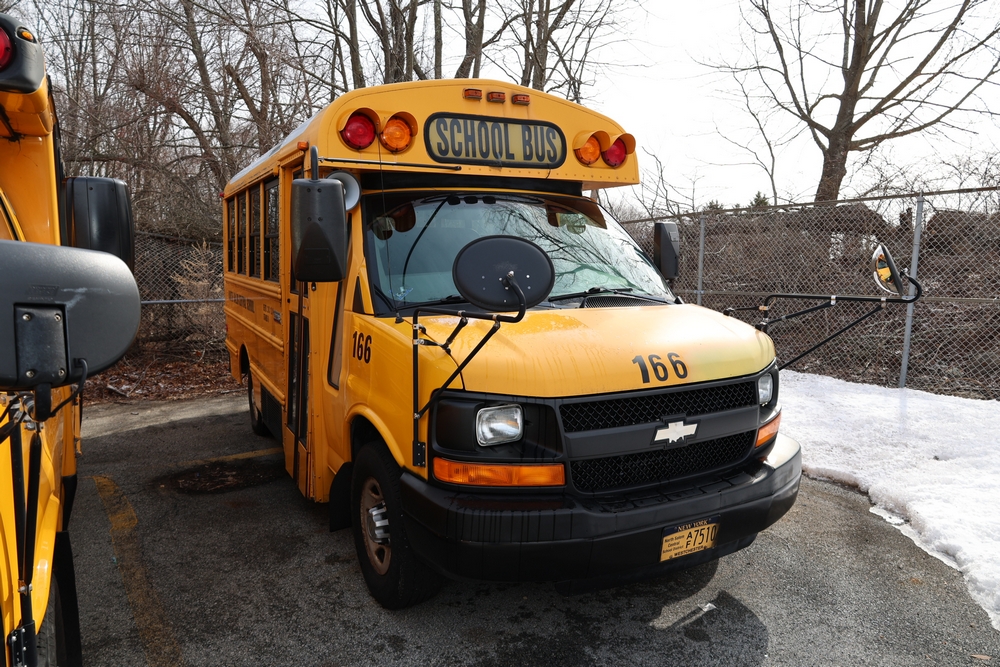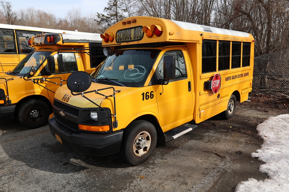 Items include 2012 Freightliner B2 Thomas school bus; Jupiter trombones, Conn Alto saxophone, Selmer clarinet, Yamaha piano; 2012 GMC Savana 3500 Starcraft bus; 2009/2012/2014 Chevrolet Express 3500 Collins buses; spool of orange hose; water fountain; Scag mowers; York rakes; Fisher & Boss plows; Brush hog; Graco field line sprayer; Sure Flow electric pump sprayer; Maxon valve main & more. Items are located in North Salem, NY.