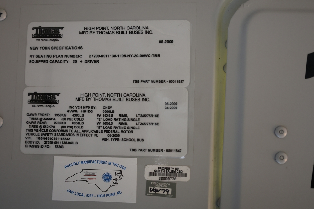 2009 Chevrolet Express 3500 Thomas Bus. VIN: 1GBHG31C891165542. Engine: 4.8L V8 SMPI Gasoline. Odometer reading: 120684. Seller Reports: Runs, drives, Body rust, frame damage. Title & key available.