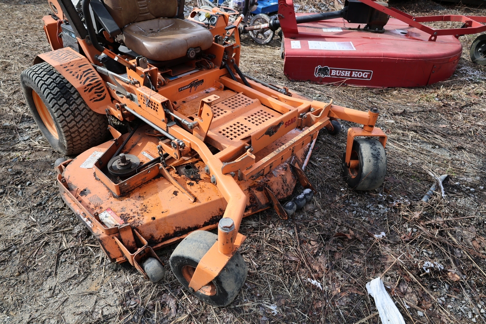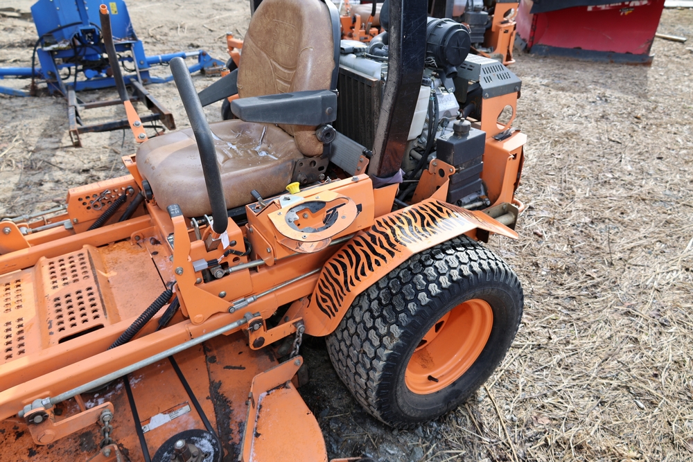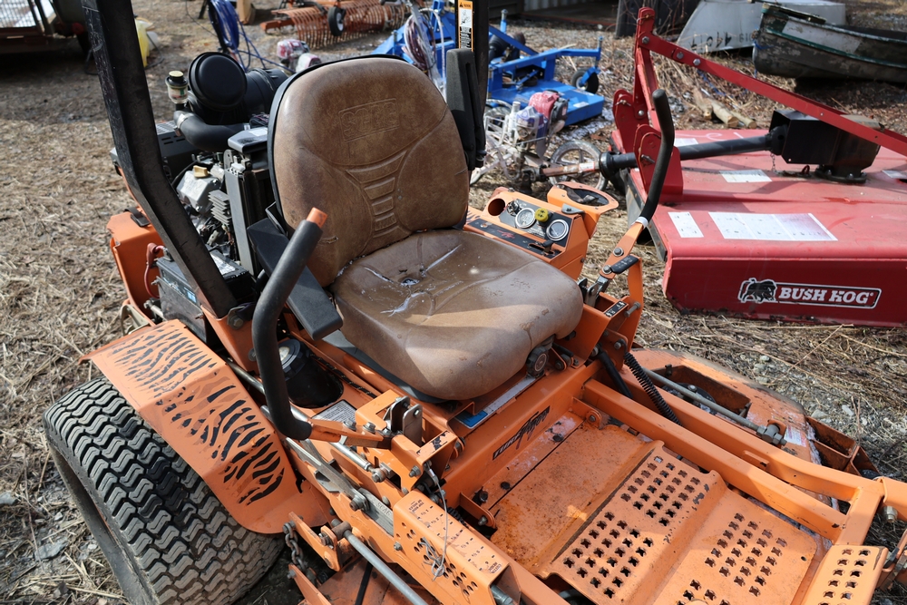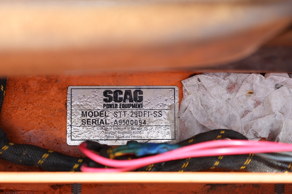 Scag Mower. Model: STT-29DFI-SS Turf Tiger. SN: A9500044. Seller reports: Operates, Grass catcher 72", 29 HP Kawasaki FD791D. Hours reading: 1674.9.