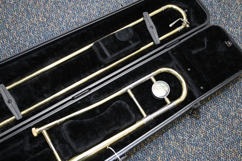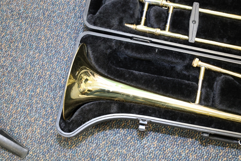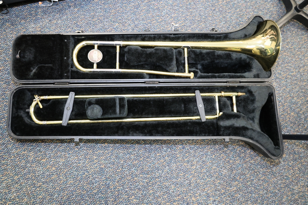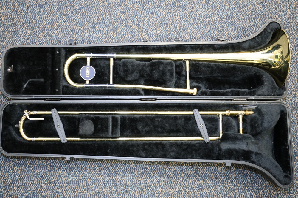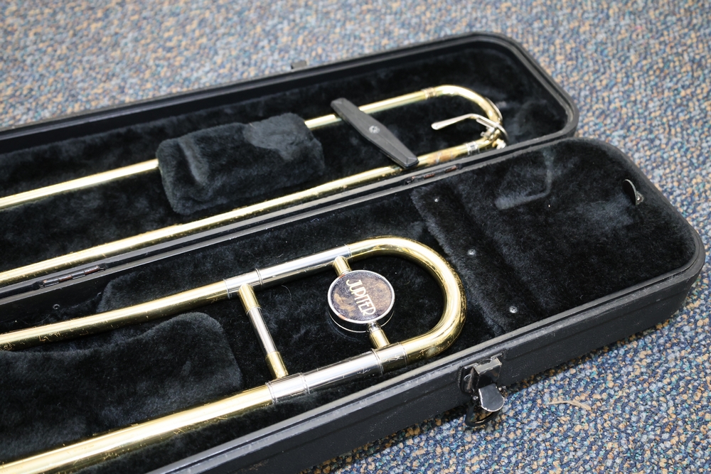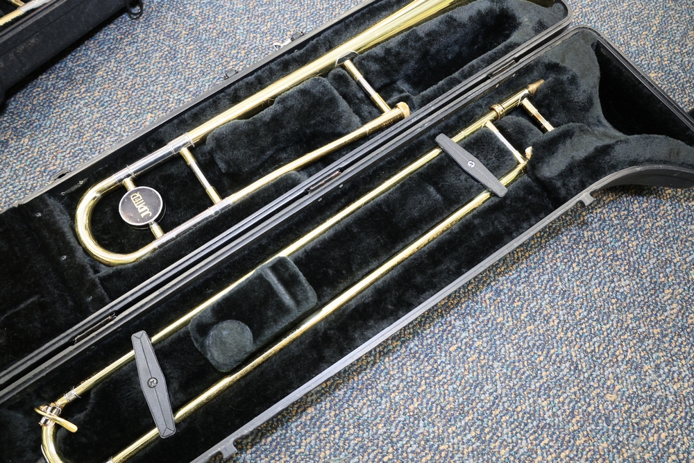 Musical Instruments including Jupiter trombones, Conn Alto Saxophone, Selmer clarinet. See attached list for details.