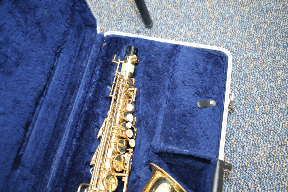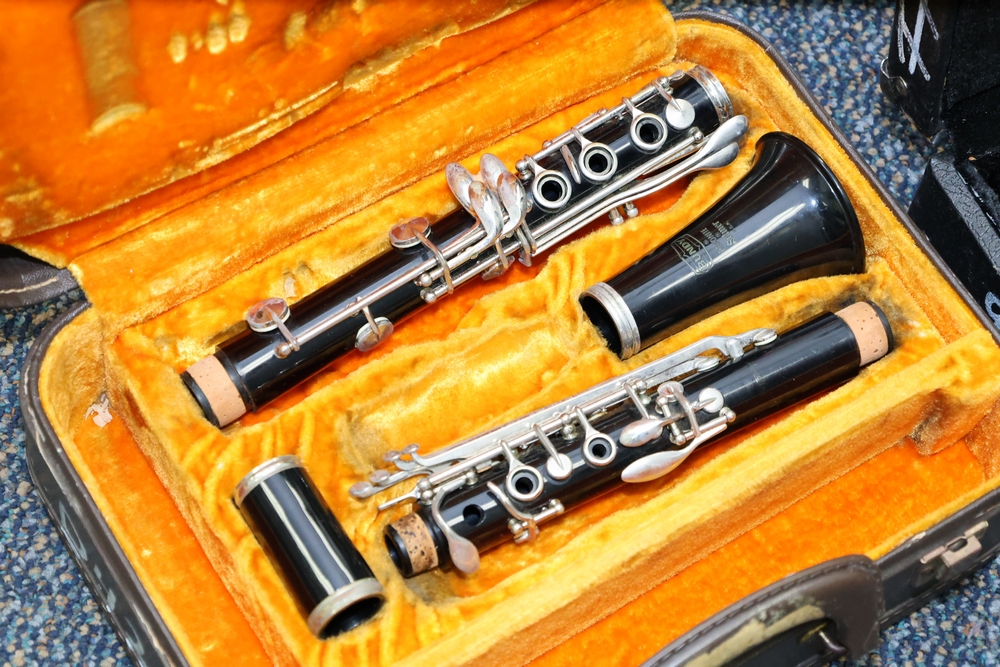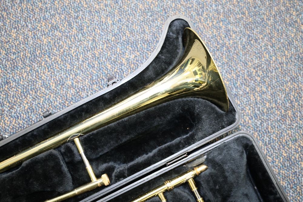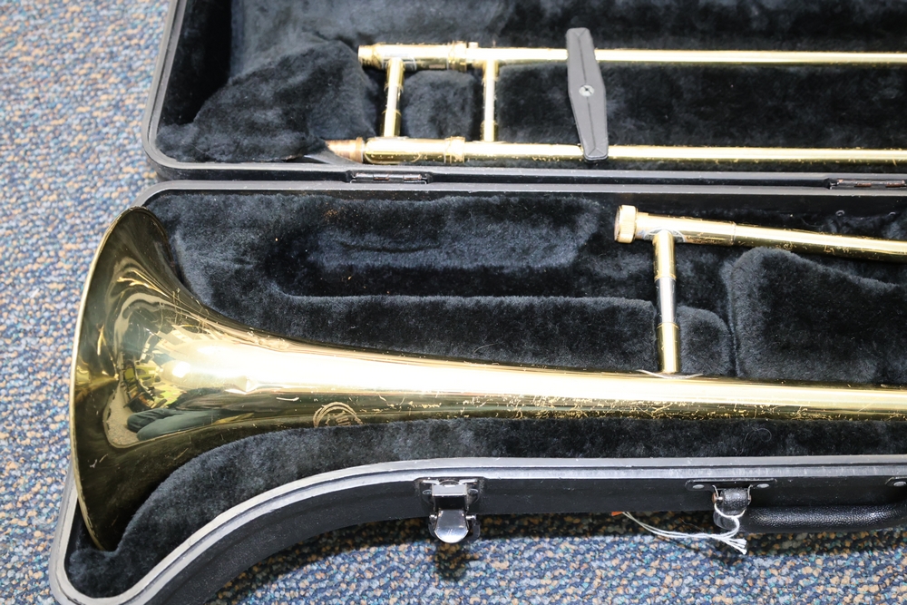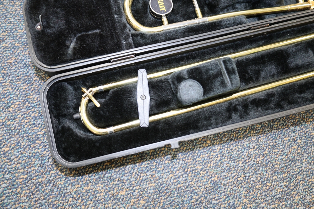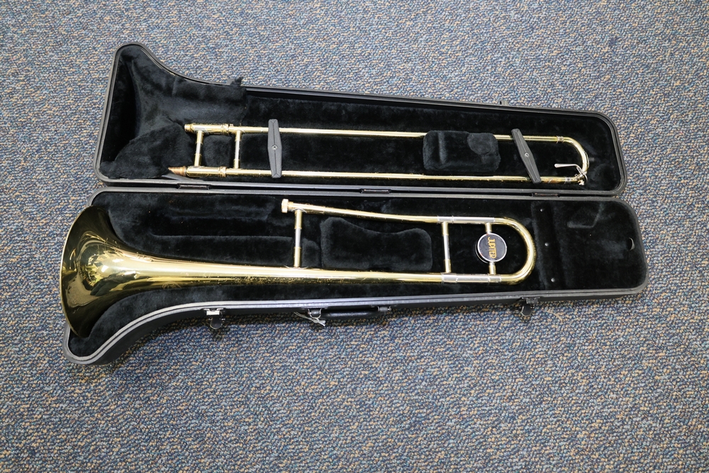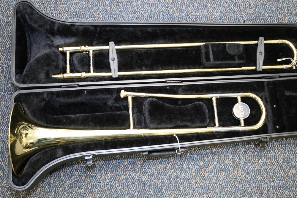 Musical Instruments including Jupiter trombones, Conn Alto Saxophone, Selmer clarinet. See attached list for details.
