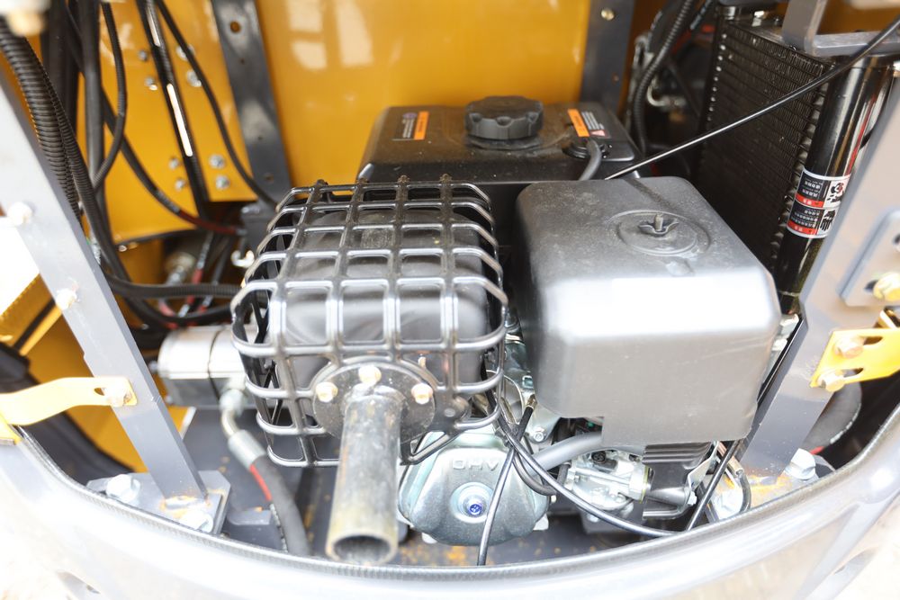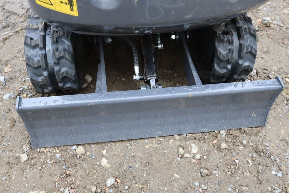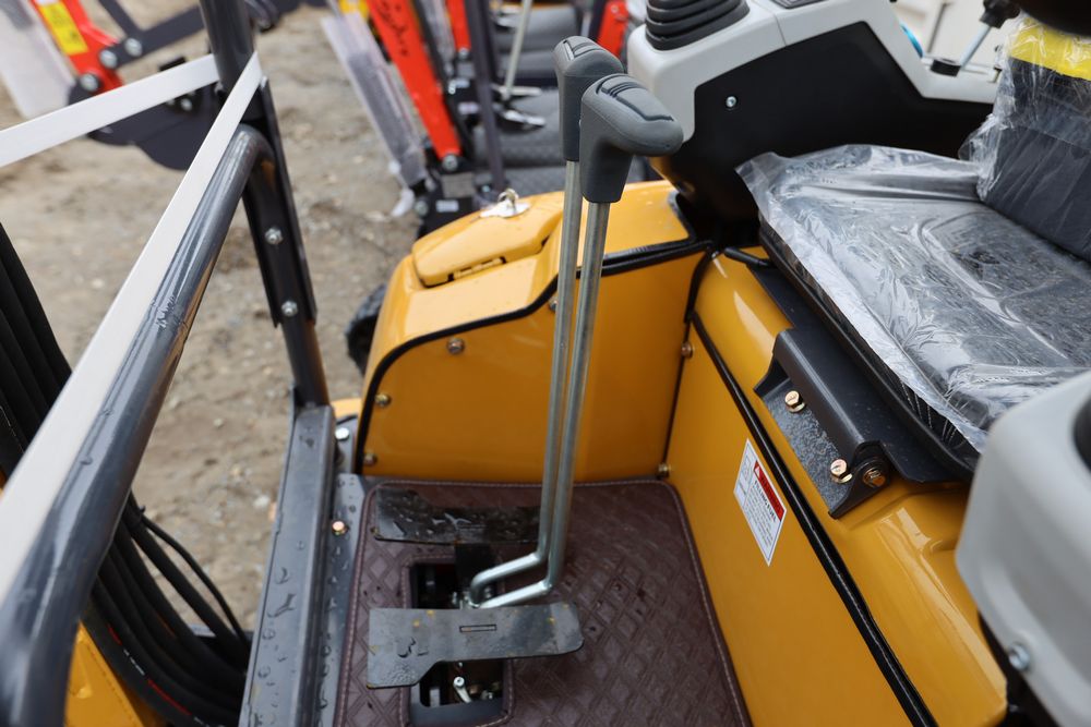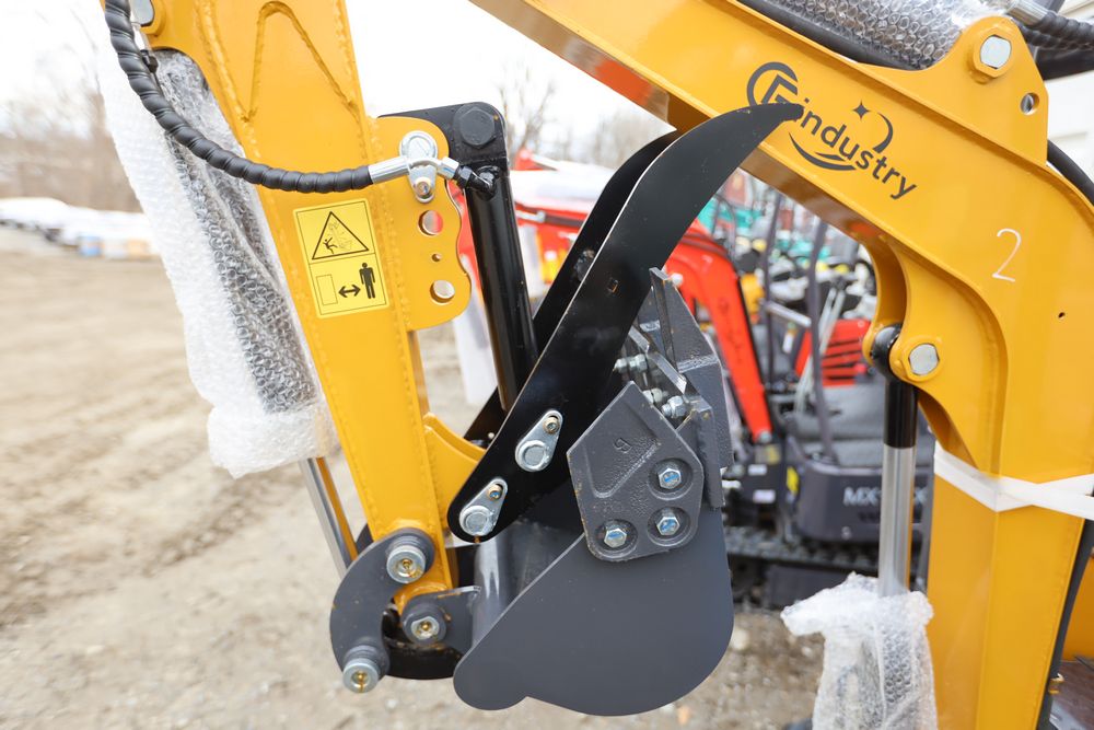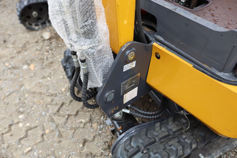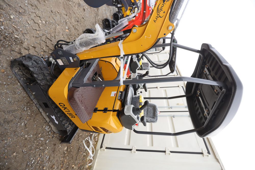 New 2025 CFG mini excavator, model QK18R, RATO, 13.5HP, 8.6KW, with pilot system, hydraulic thumb, rubber tracks, dozer blade, and gasoline engine. Hours reading less than one hour.