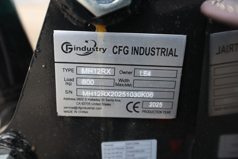 New 2026 CFG Industrial MH12RX mini excavator with bucket, thumb, gas engine. Hours reading less than 1 hour.