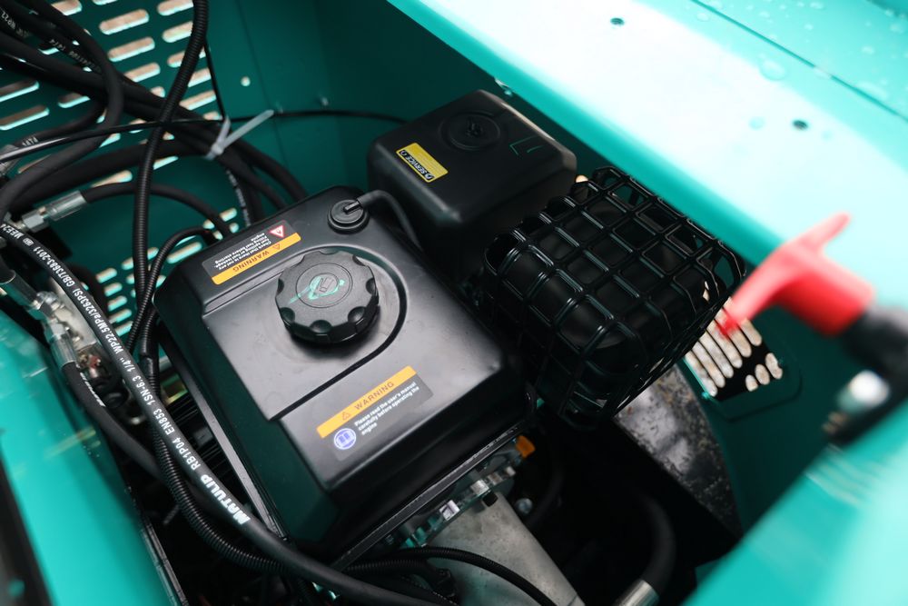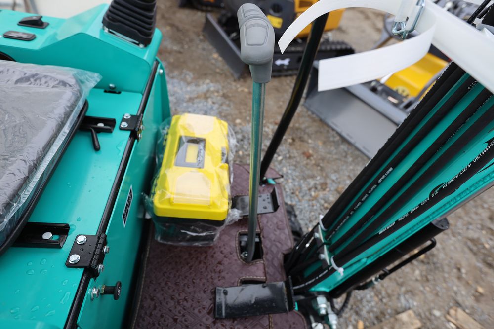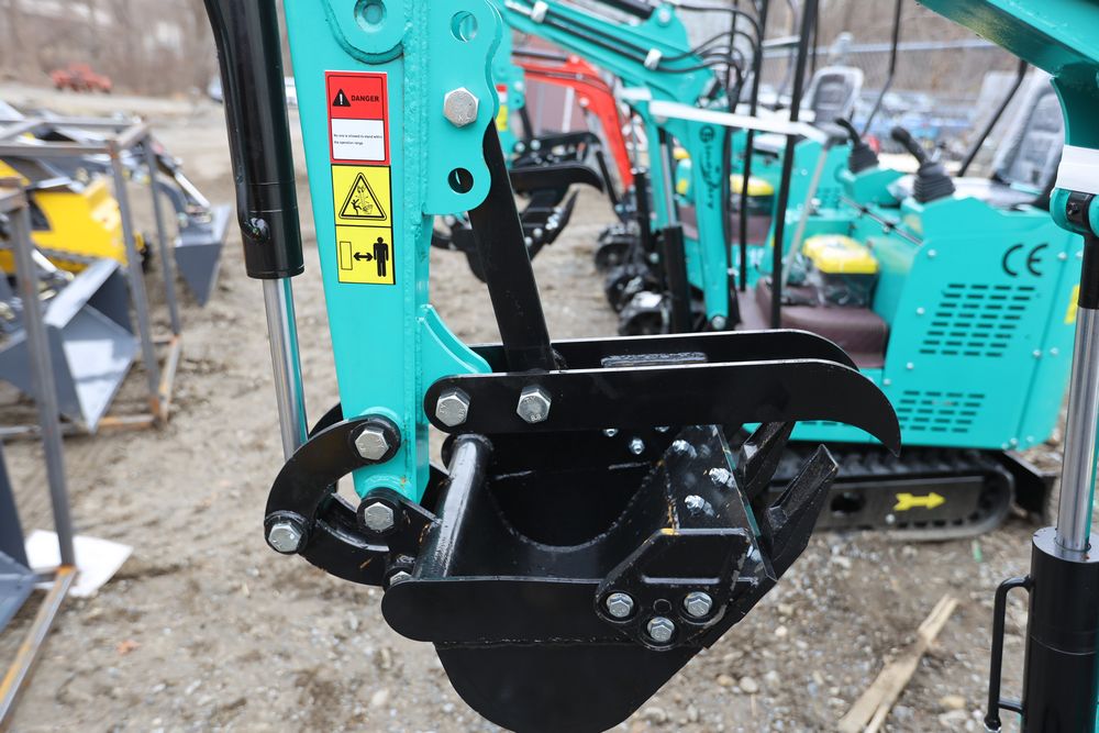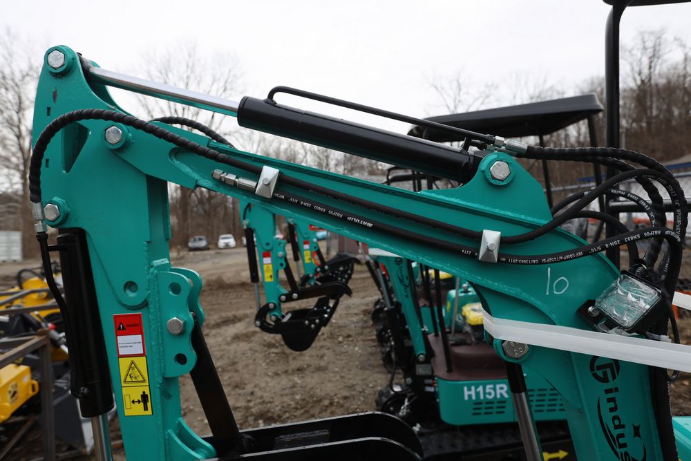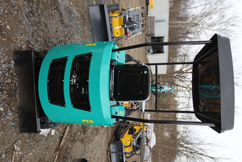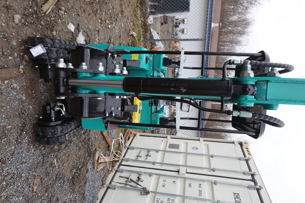 New 2026 CFG Industrial gas powered mini Excavator model H15R with 420cc gasoline engine, bucket, 4' long tracks, 38.5" wide base, 6" wide tracks, canopy, hydraulic boom & bucket controls, pilot system, thumb, dozer blade. Hours reading less than 1 hour.