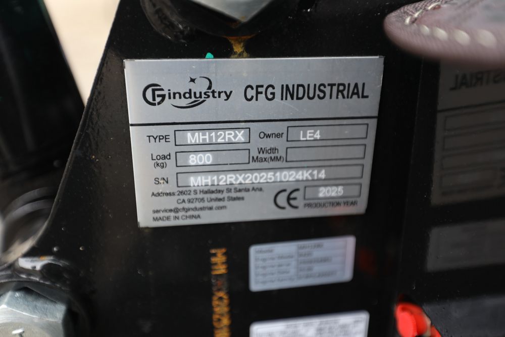 New 2026 CFG Industrial MH12RX mini excavator with bucket, thumb, gas engine. Hours reading less than 1 hour.