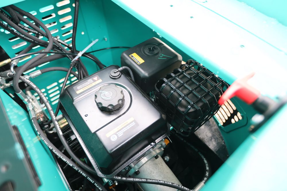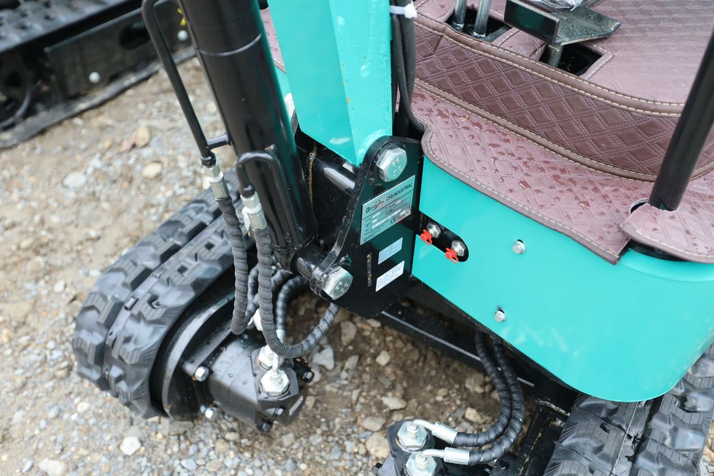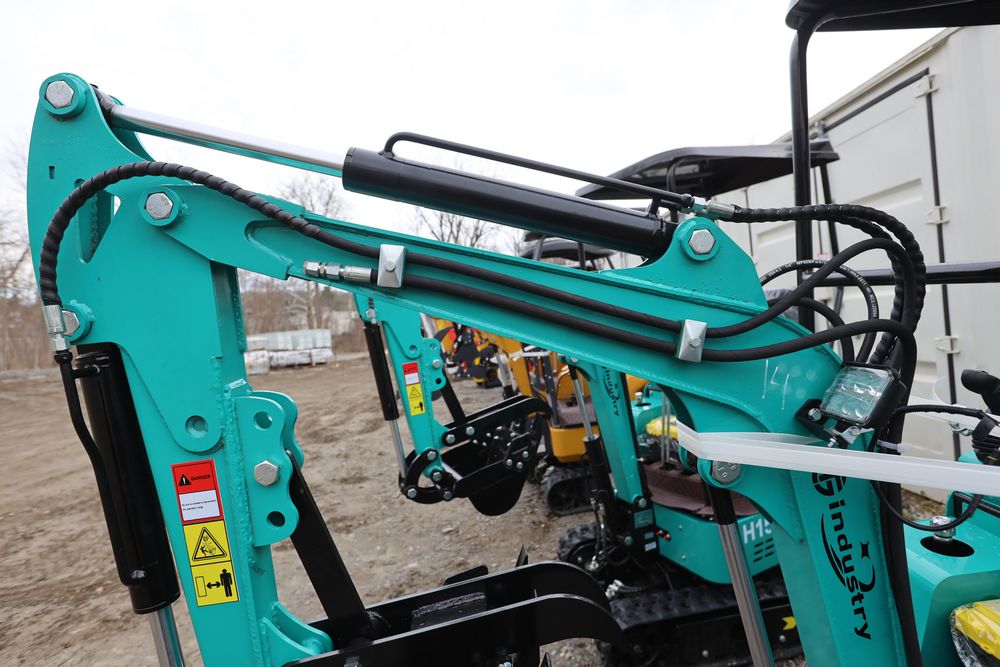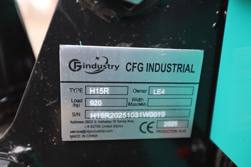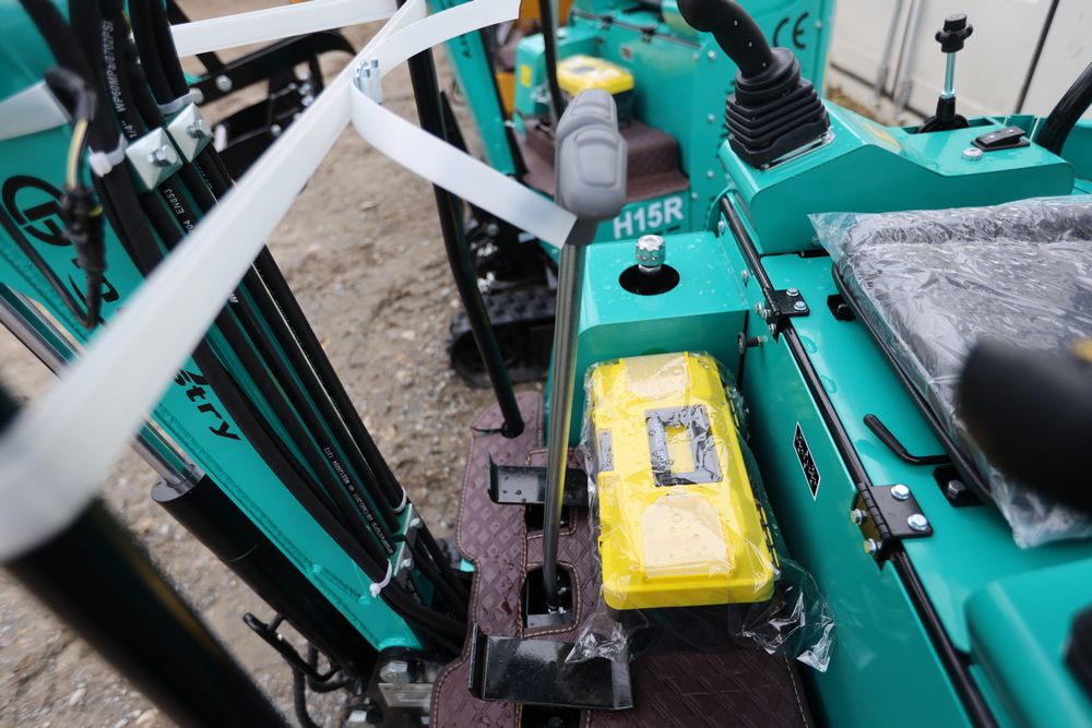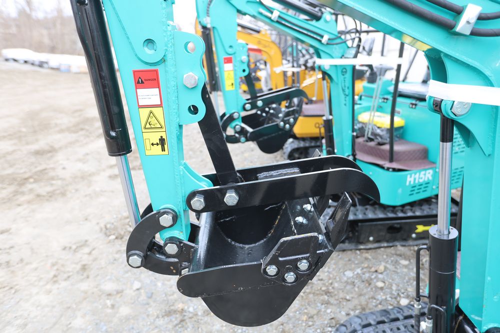 New 2026 CFG Industrial gas powered mini Excavator model H15R with 420cc gasoline engine, bucket, 4' long tracks, 38.5" wide base, 6" wide tracks, canopy, hydraulic boom & bucket controls, pilot system, thumb, dozer blade. Hours reading less than 1 hour.