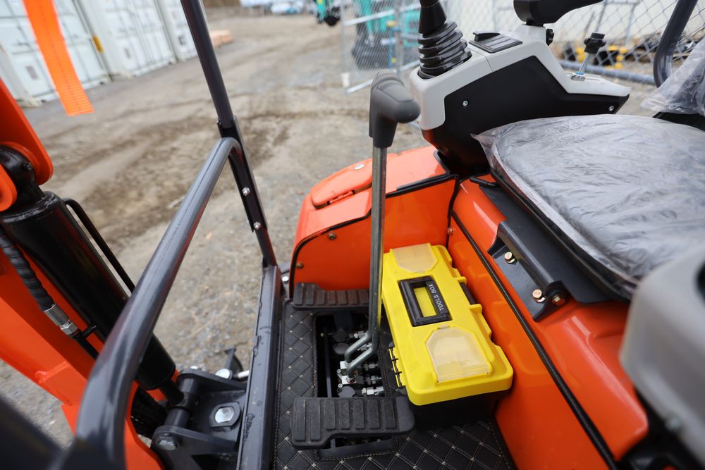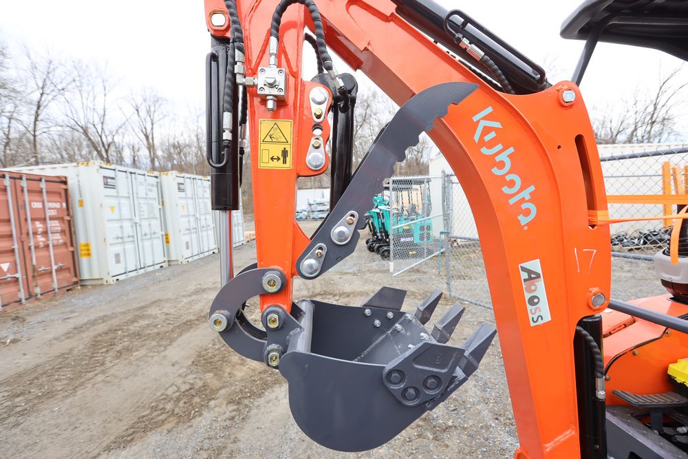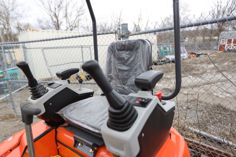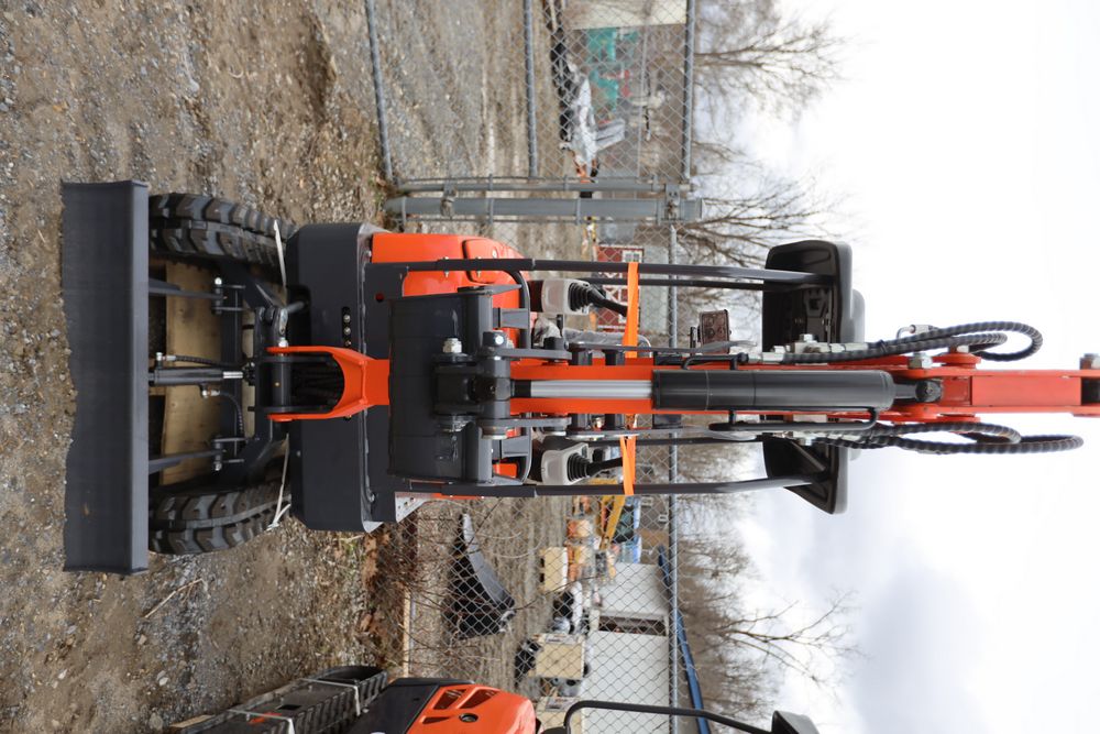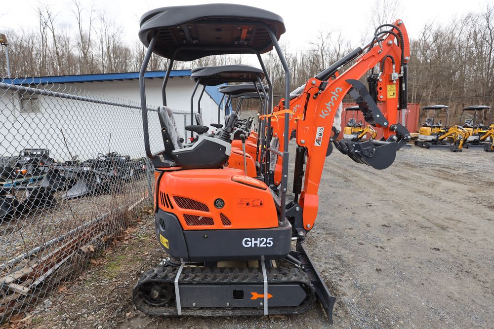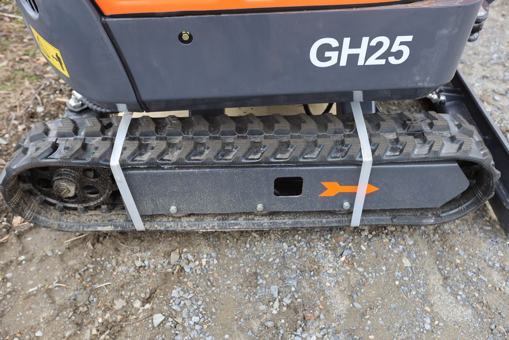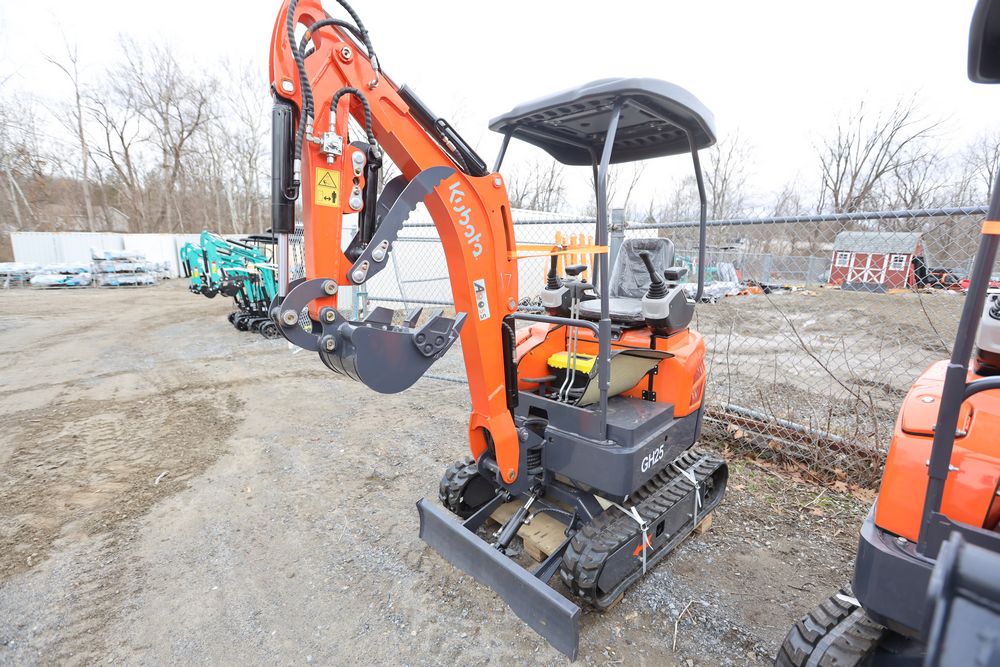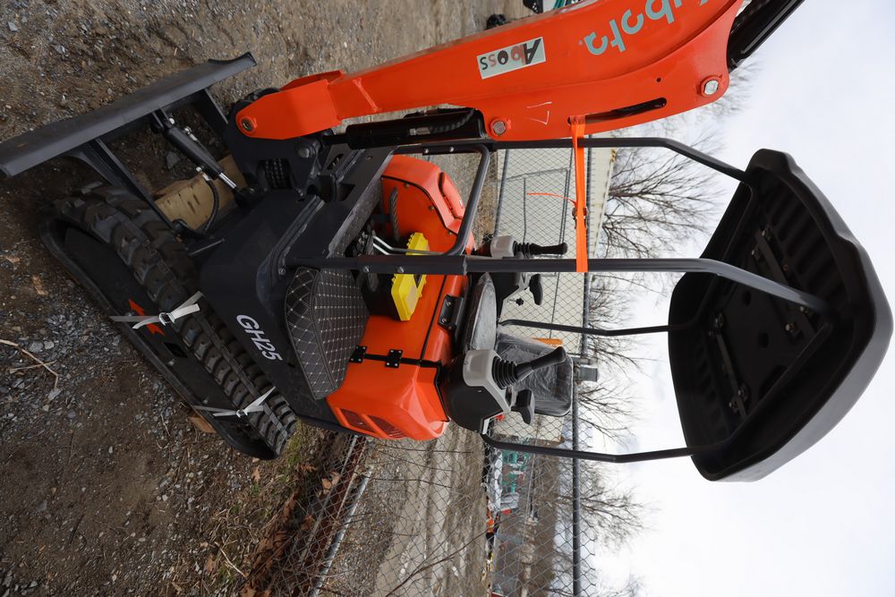 New 2026 Aboss GH25 mini excavator with Yanmar diesel engine, swing boom, bucket, dozer blade, hydraulic thumb, and pilot controls. Hours reading less than one hour.