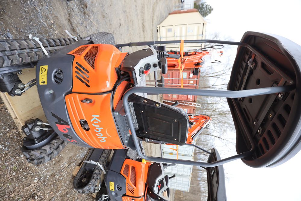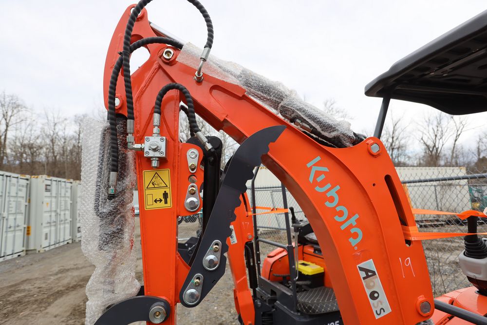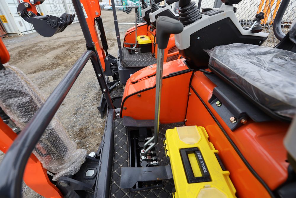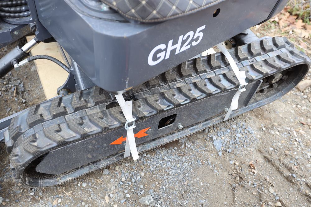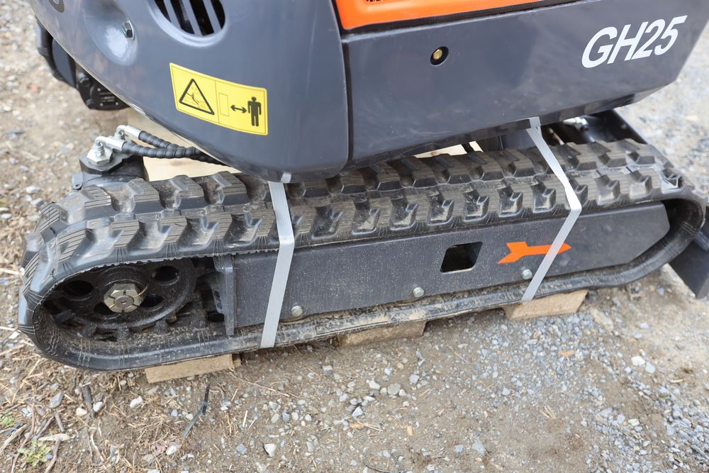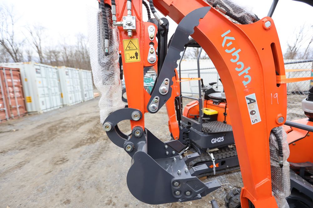 New 2026 Aboss GH25 mini excavator with Yanmar diesel engine, swing boom, bucket, dozer blade, hydraulic thumb, and pilot controls. Hours reading less than one hour.