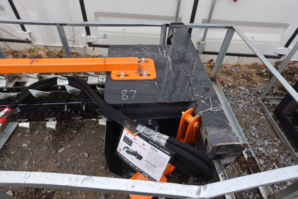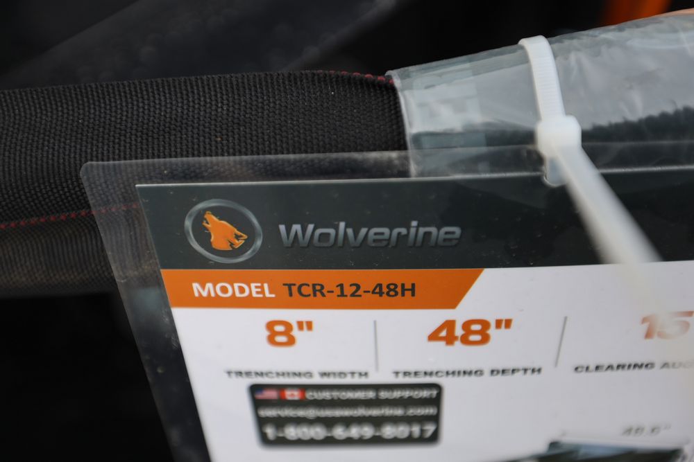 New 2025 Wolverine Skid Steer Trencher attachment model TCR-12-48H, trenching width 8", depth 48", clearing auger dia 15".